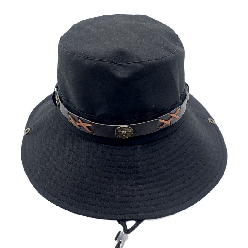 春夏户外时尚西部牛仔渔夫帽牛头皮带配饰遮阳帽英伦钓鱼登山帽子