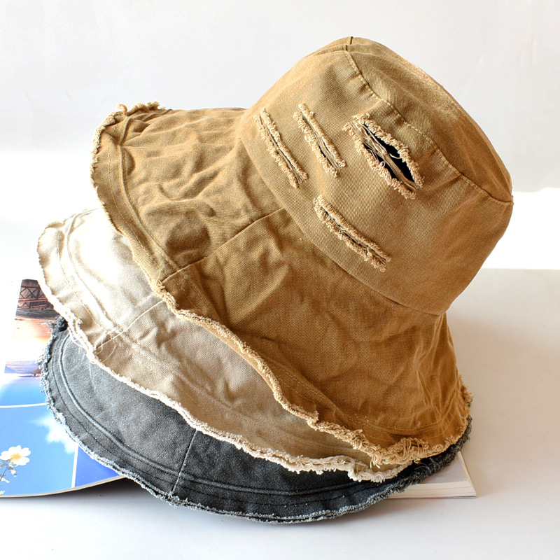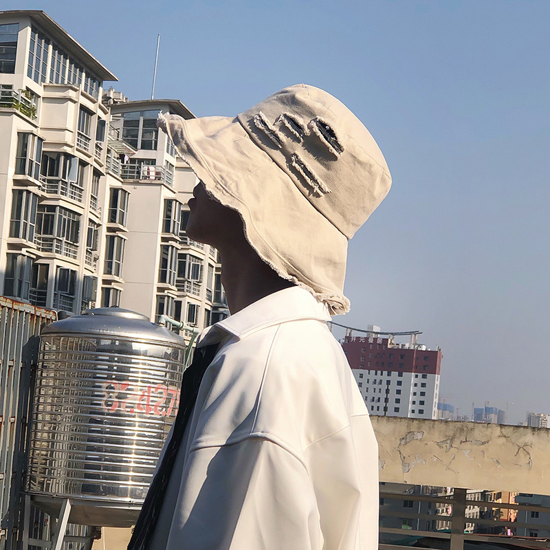 日系个性破洞水洗大檐渔夫帽子男韩版春夏户外遮脸防晒盆帽遮阳帽
