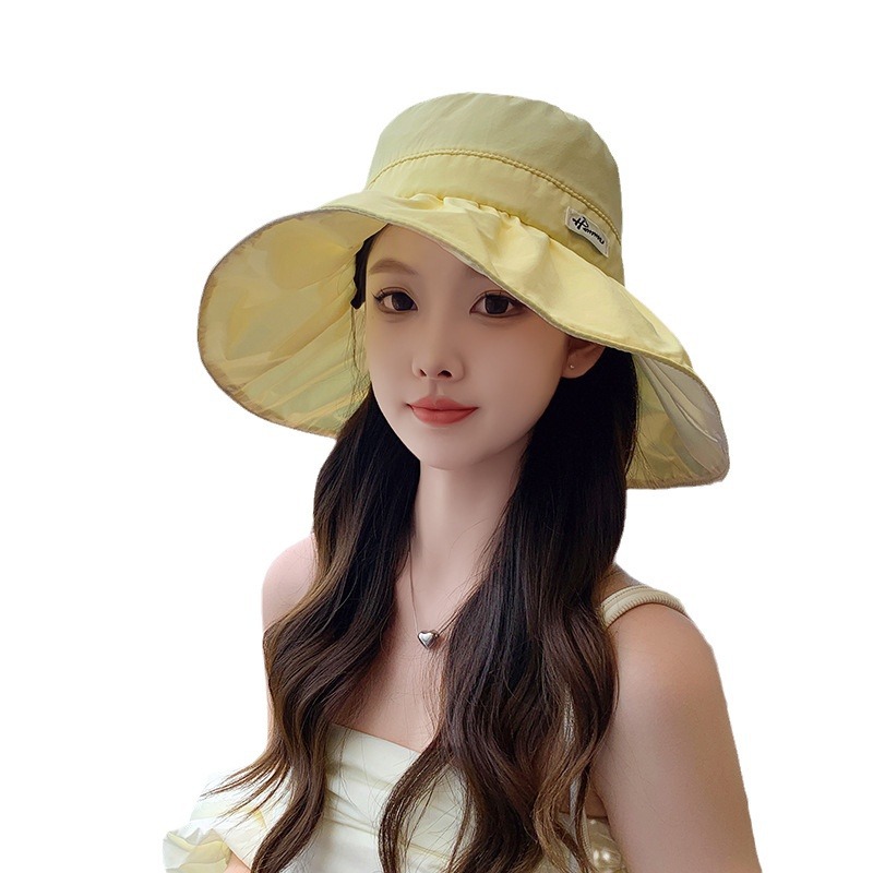 春夏新款户外出行防晒遮阳帽女轻薄日系百搭字母渔夫帽大檐太阳帽