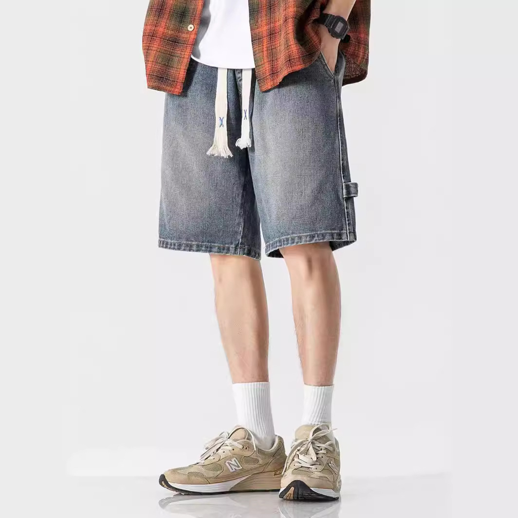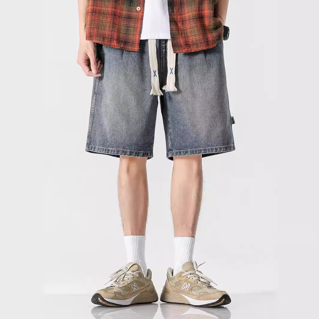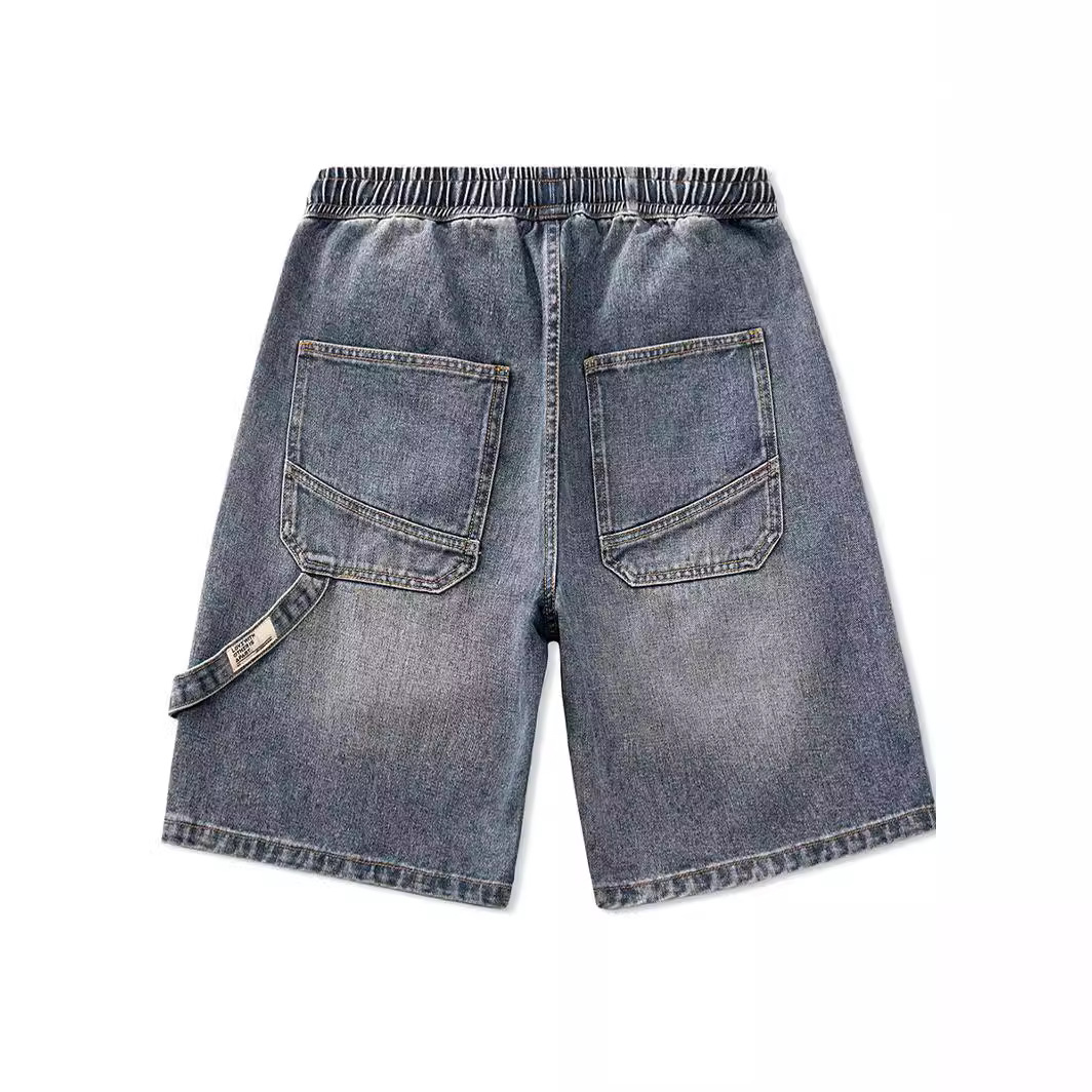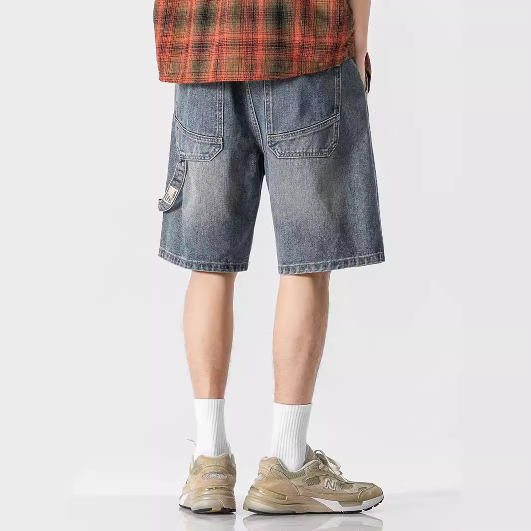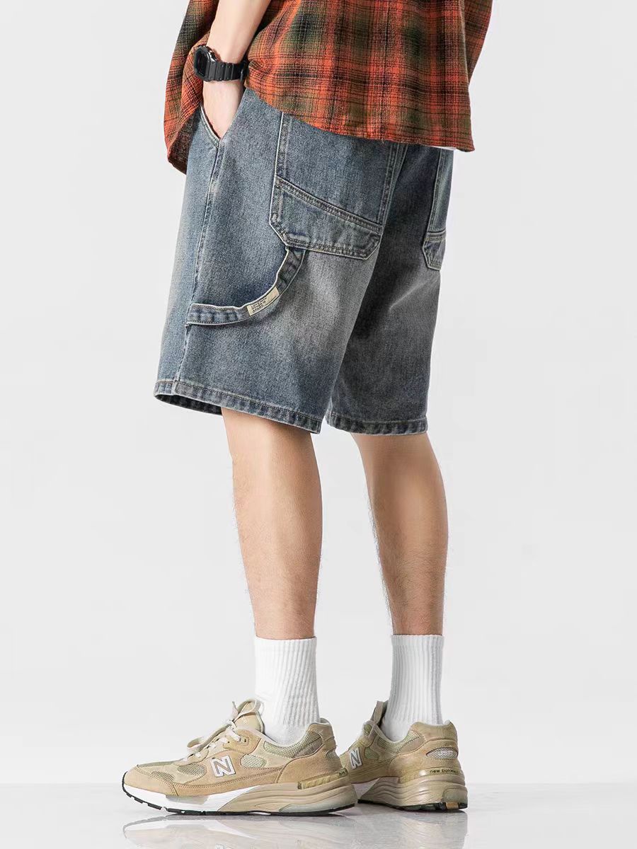 美式牛仔短裤男款夏季潮牌潮流痞帅中裤男生宽松工装五分裤子