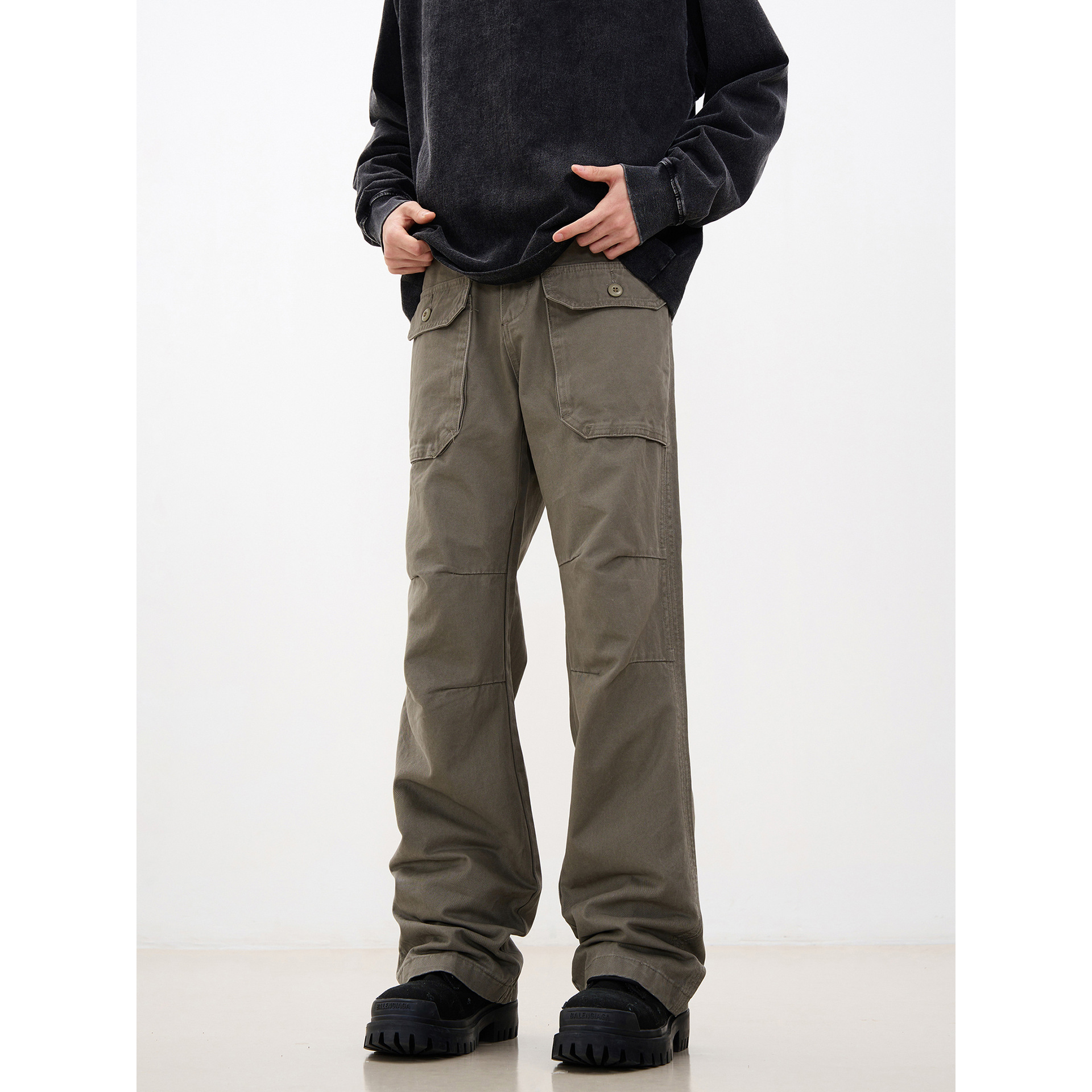 美式复古多口袋褶皱微喇工装裤男夏季新款潮牌小众cleanfit休闲裤