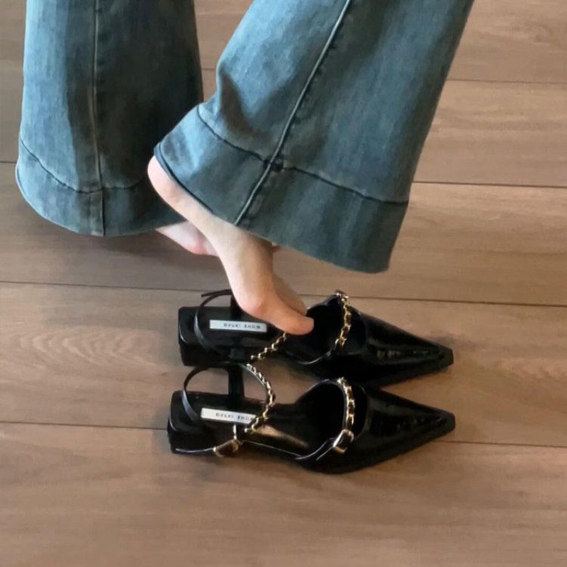 新款法式绝美包头凉鞋女低跟夏气质仙女风尖头单鞋后空感