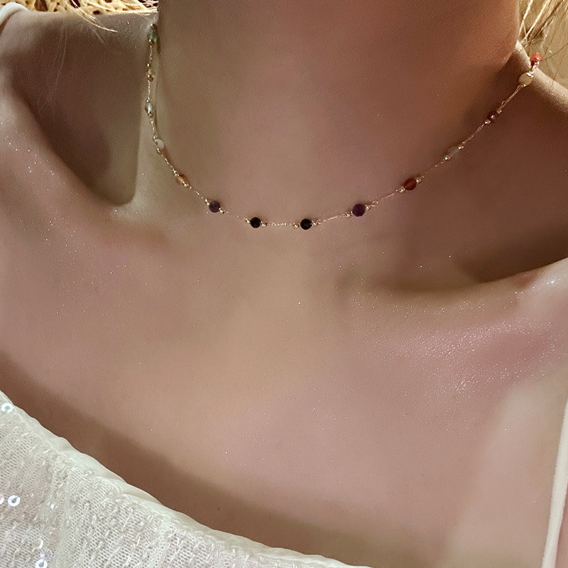 彩色串珠项链女 ins简约气质百搭锁骨链新款短款颈链配饰潮