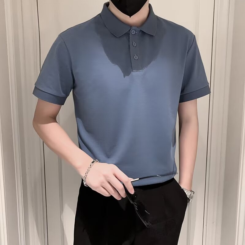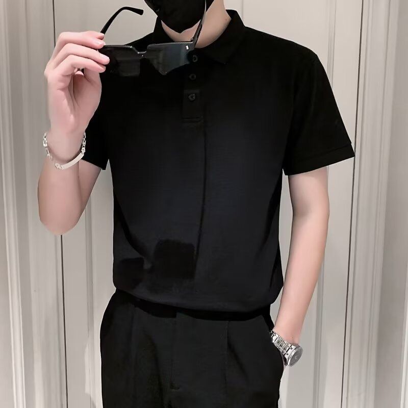 夏季商务修身短袖t恤男士帅气休闲潮流翻领polo衫上衣高品质纯色