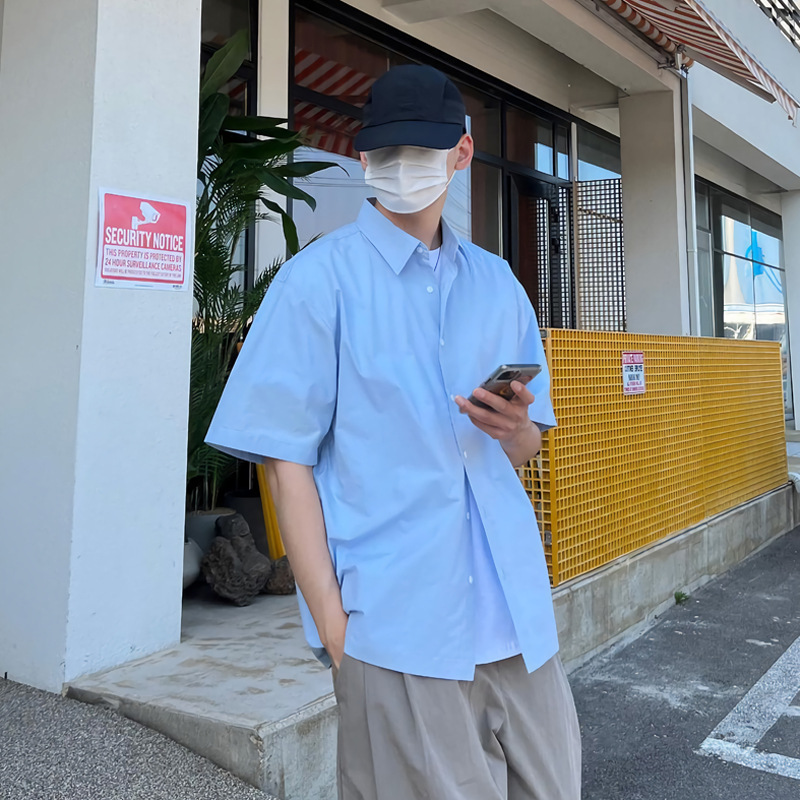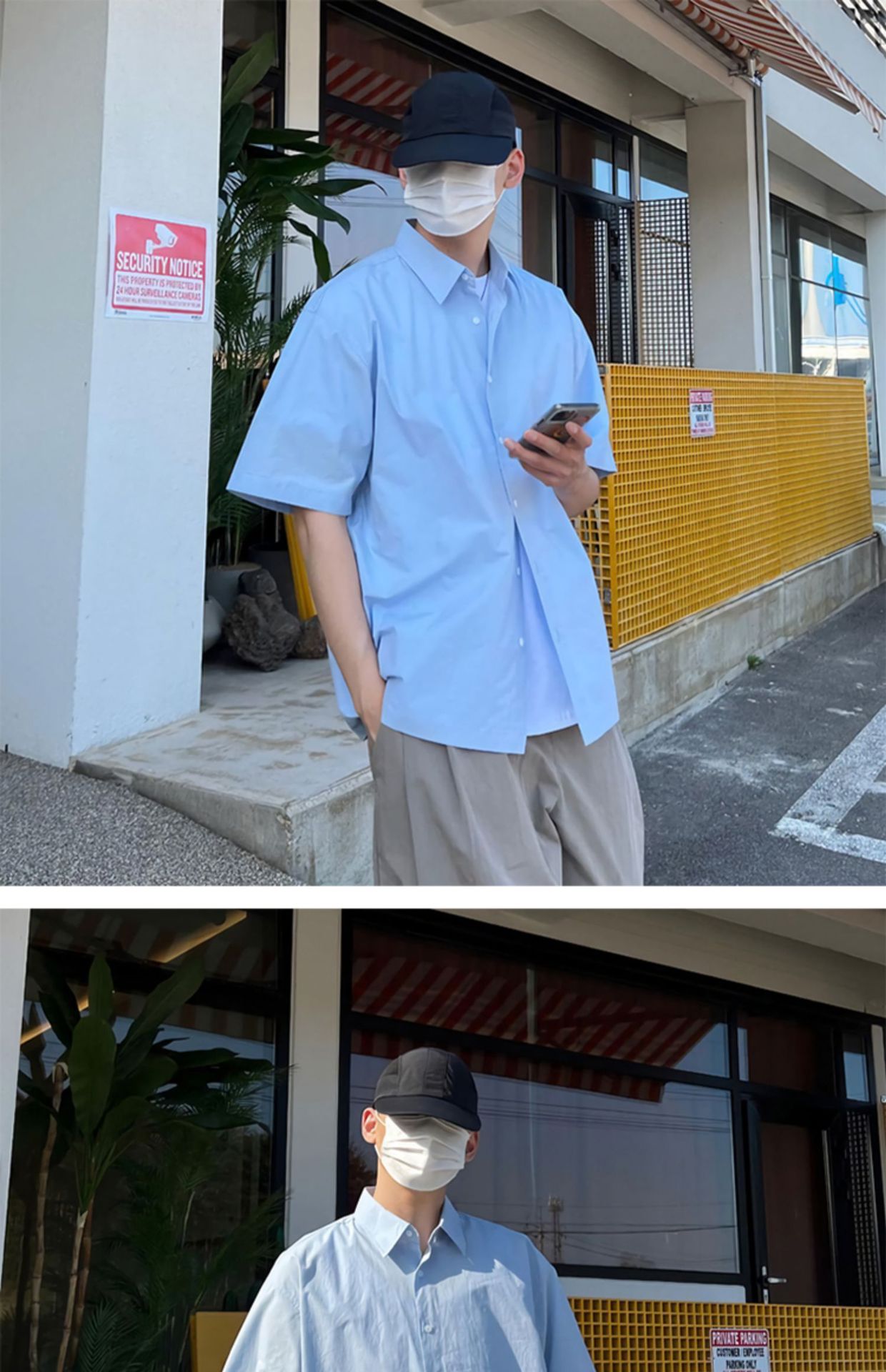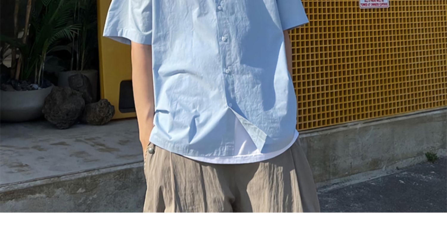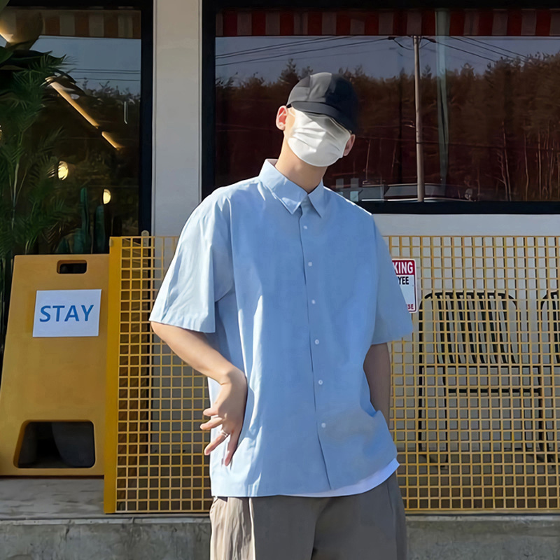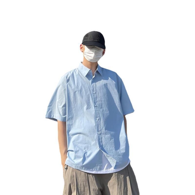 浅蓝色短袖衬衫男款夏季潮流日系少年感穿搭ootd宽松薄款休闲外套
