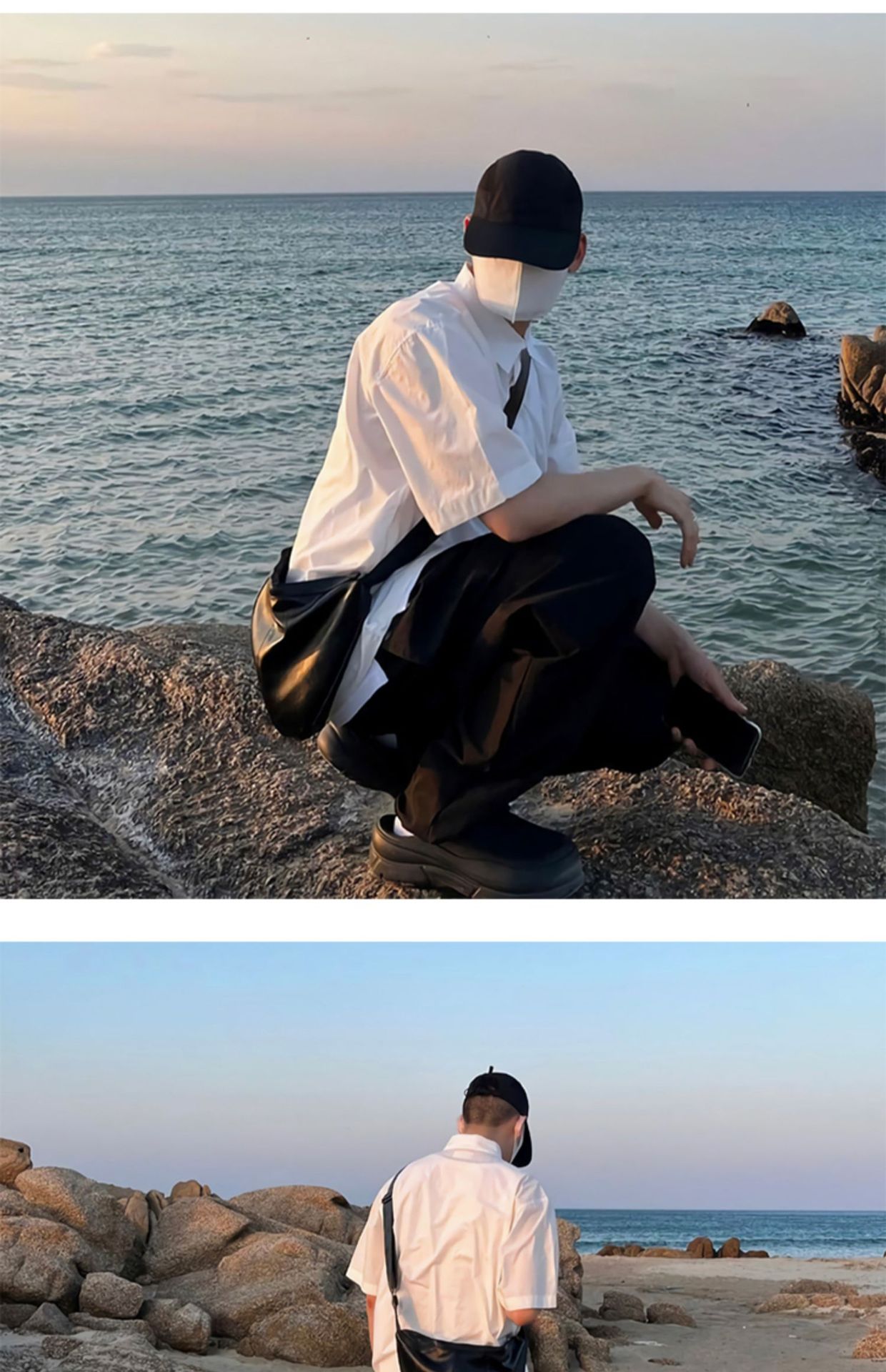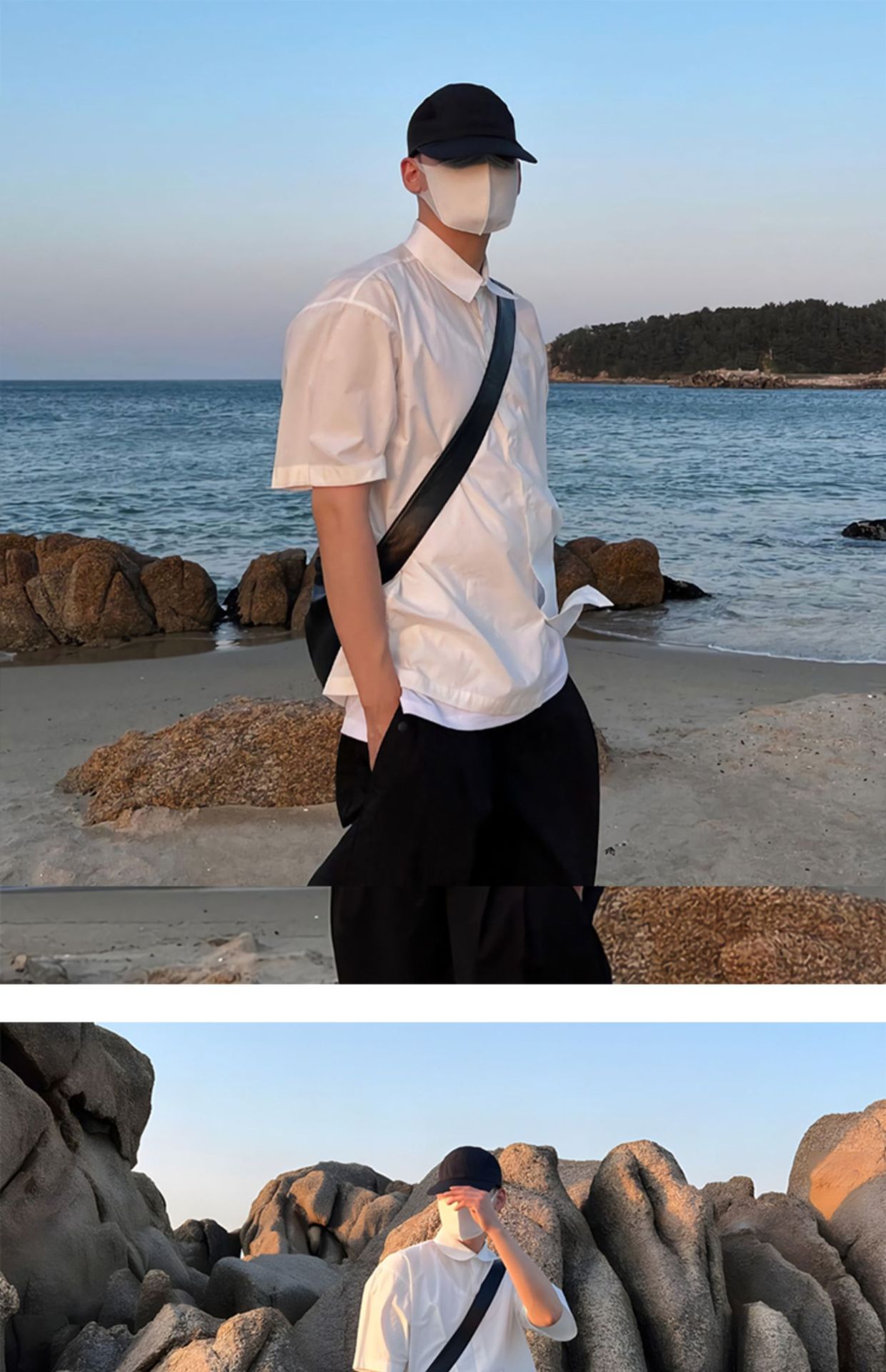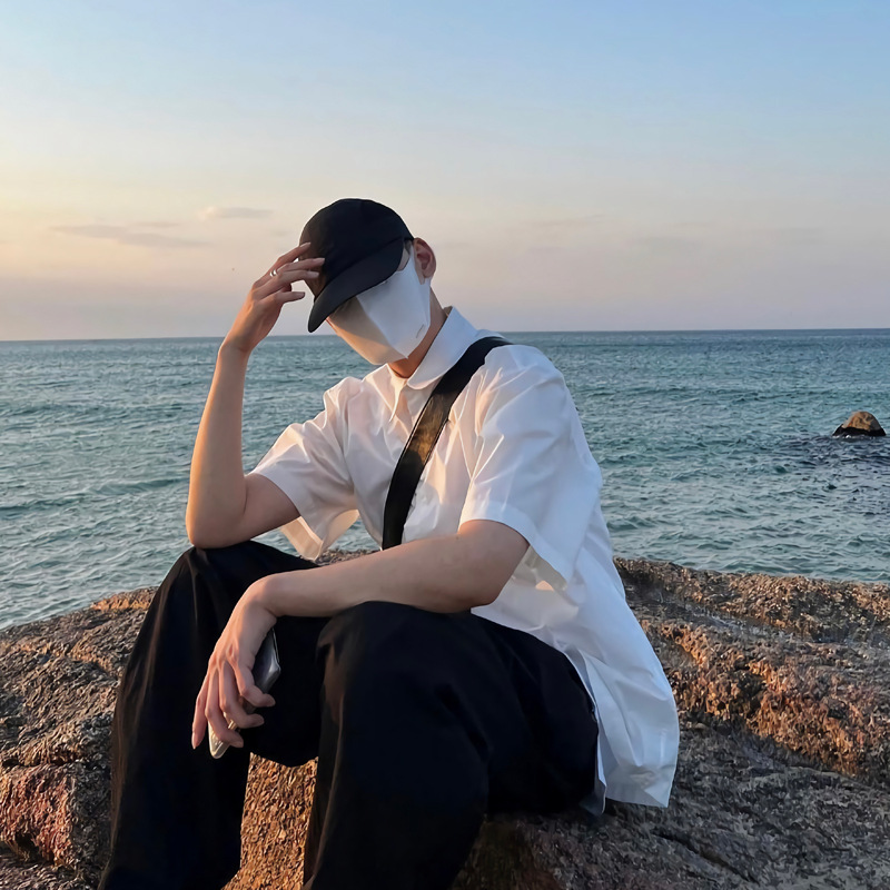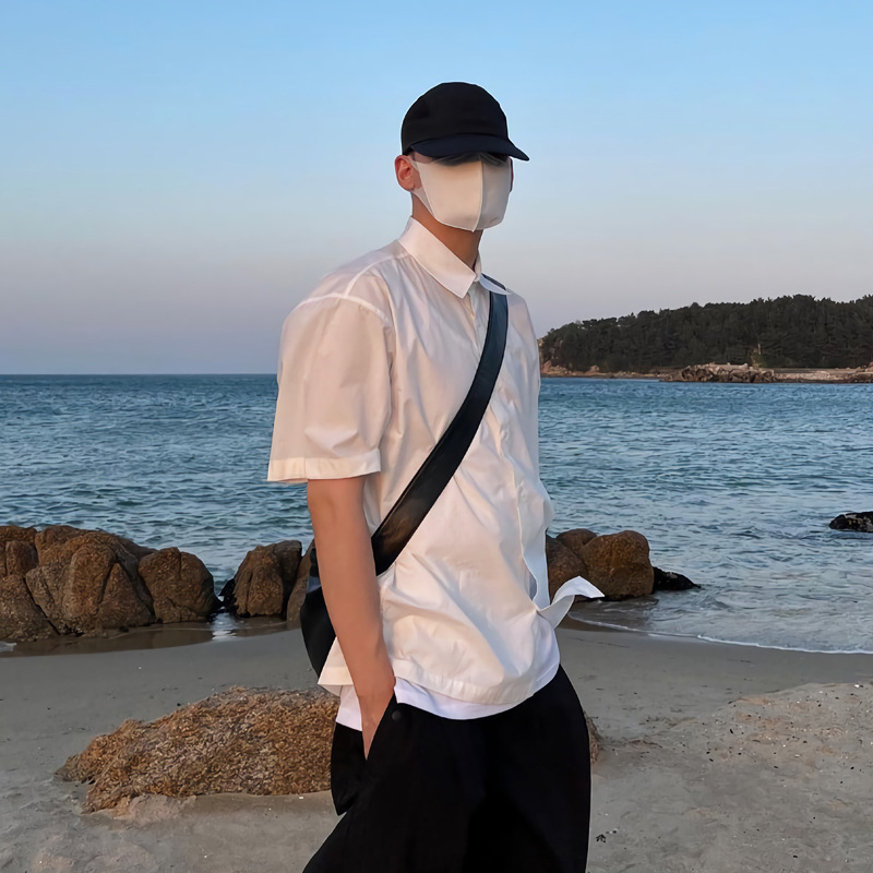 浅蓝色短袖衬衫男款夏季潮流日系少年感穿搭ootd宽松薄款休闲外套