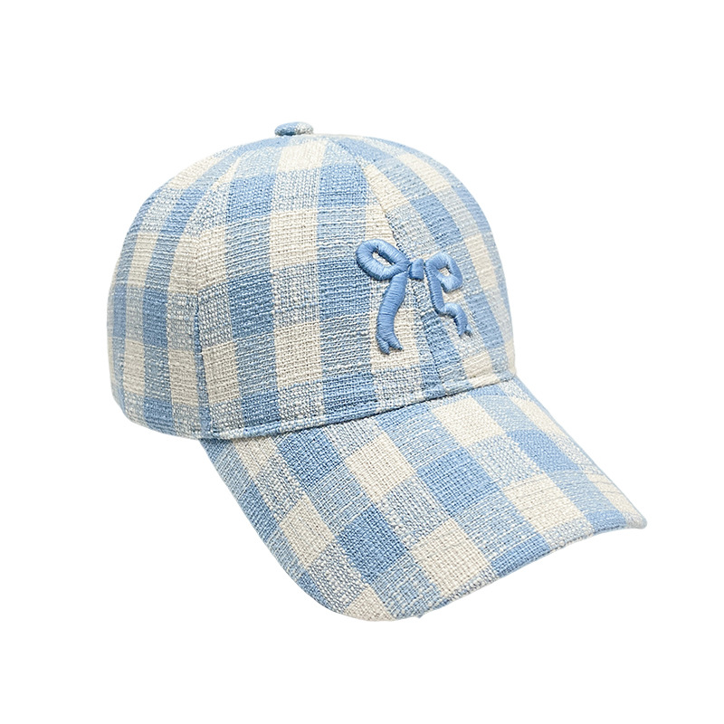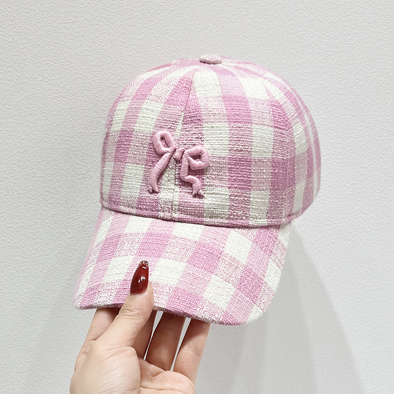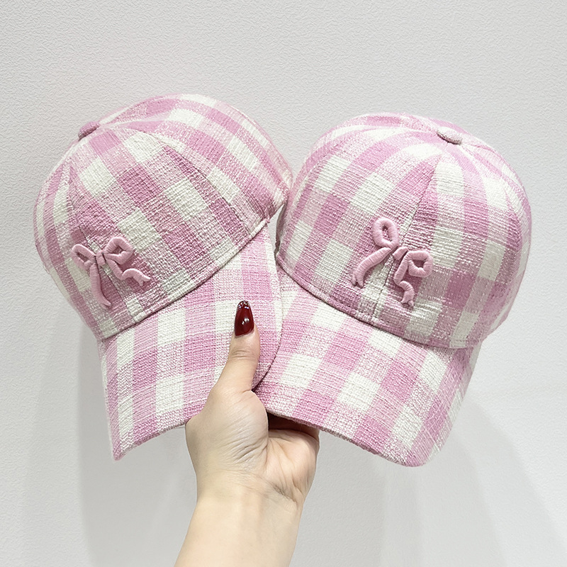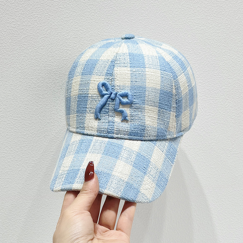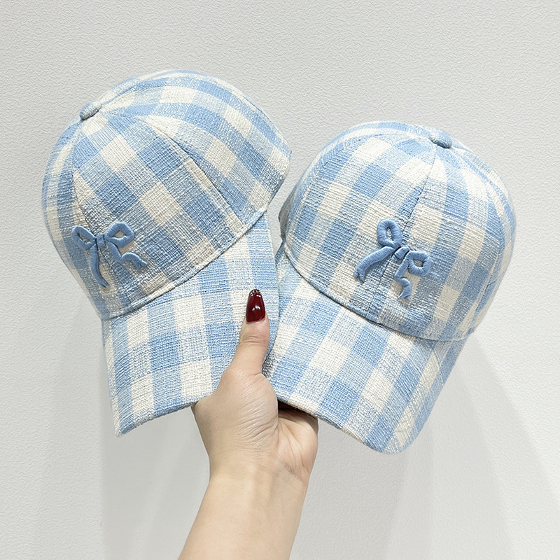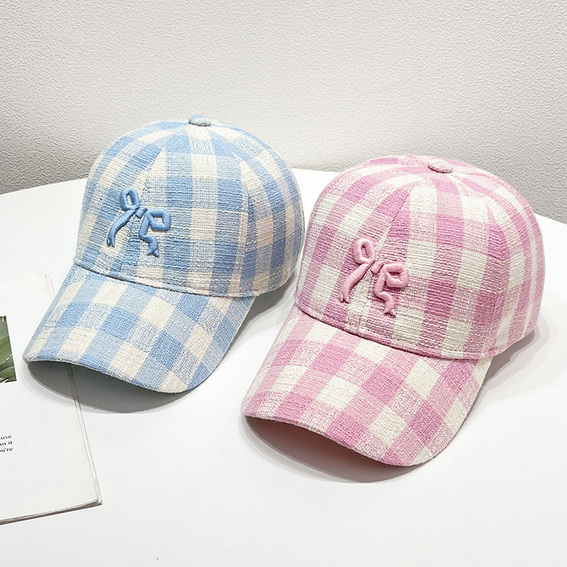 新款韩版蝴蝶结刺绣格子鸭舌帽子女春夏甜美百搭显脸小遮阳棒球帽