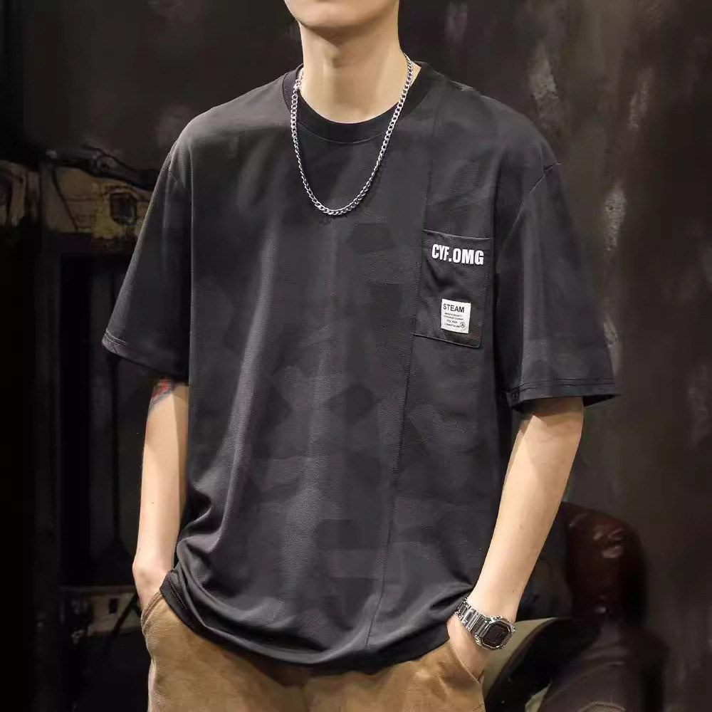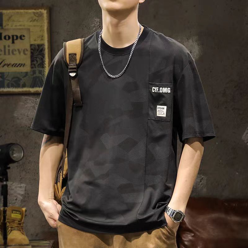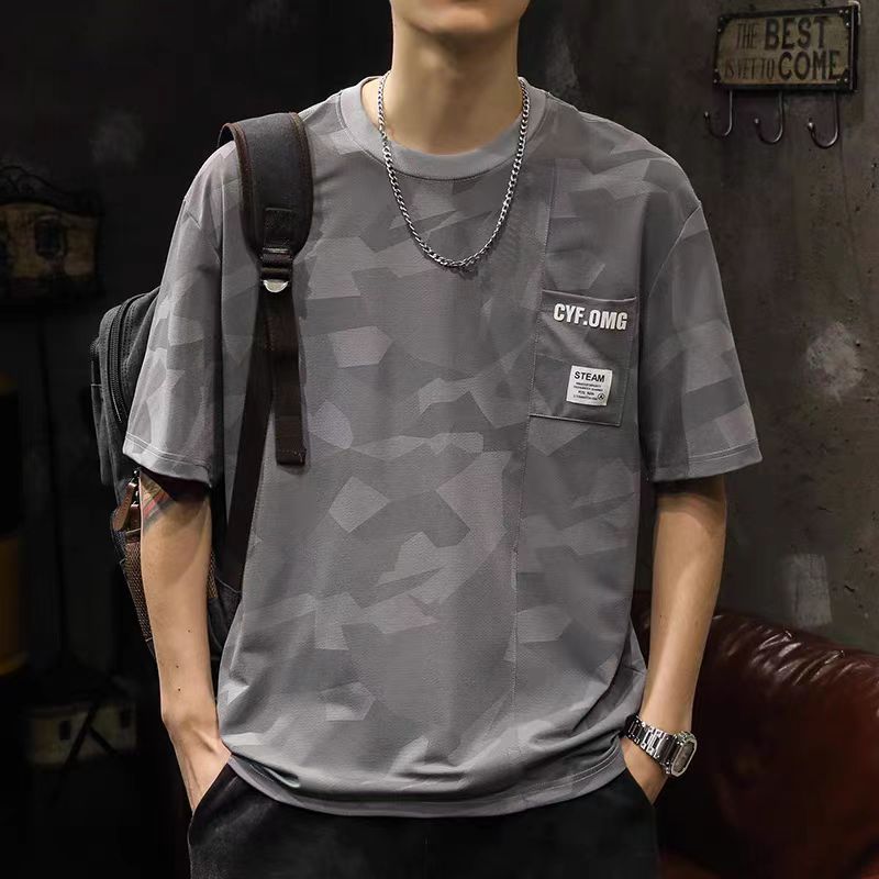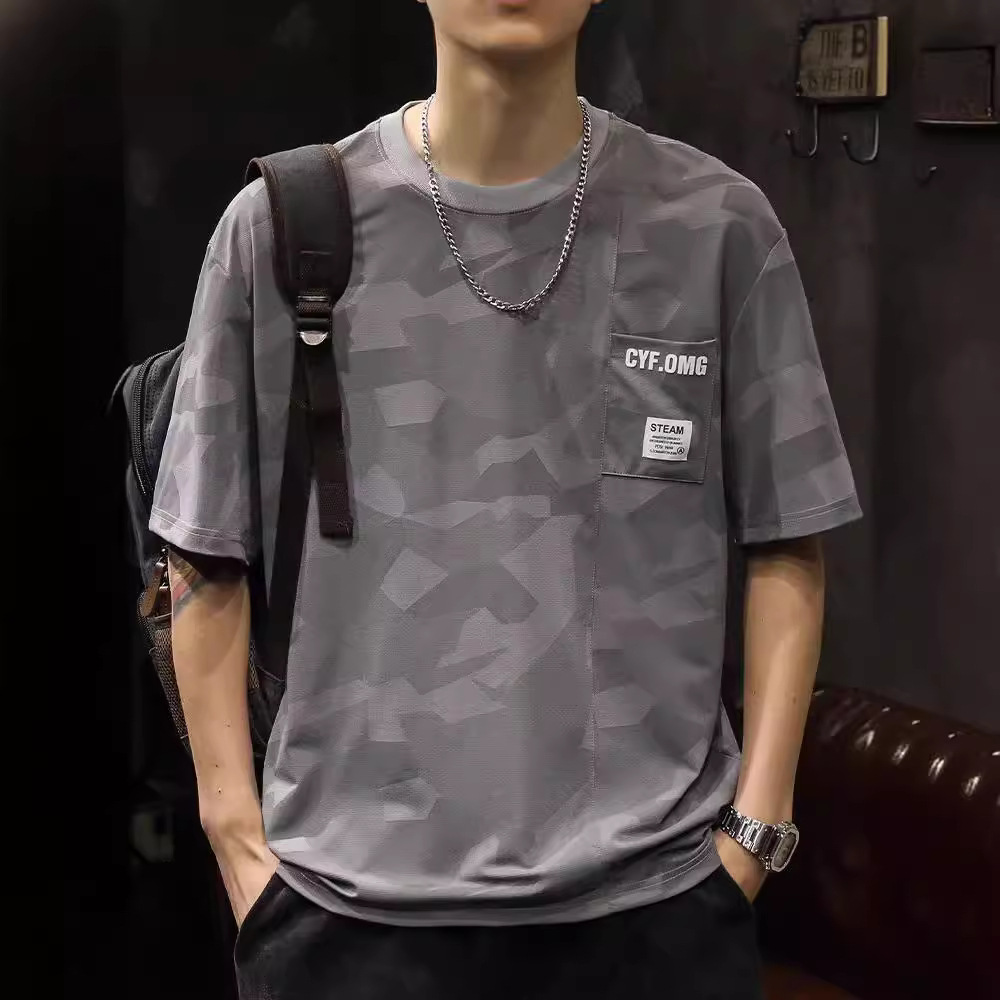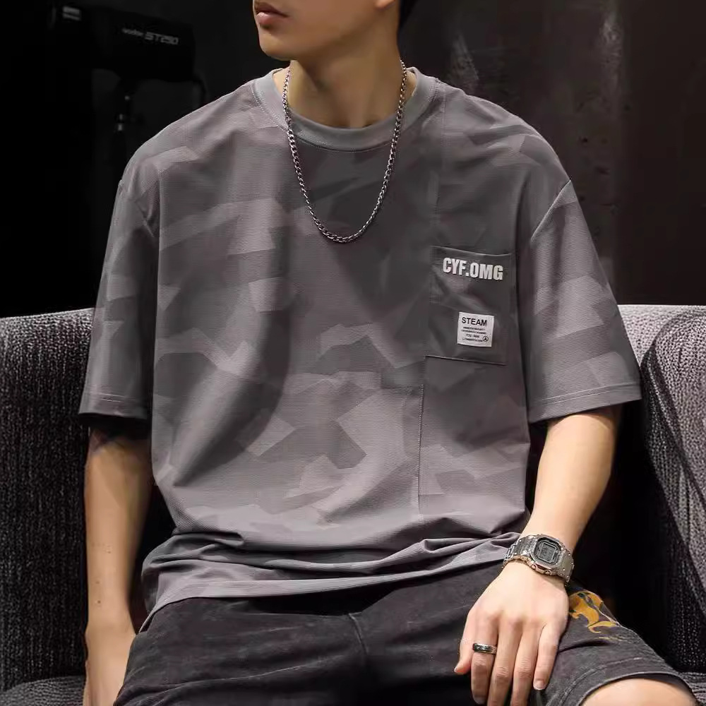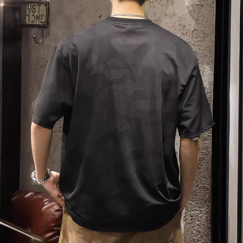 高端冰丝t恤男士短袖夏季薄款宽松大码男装潮牌美式运动半袖体恤