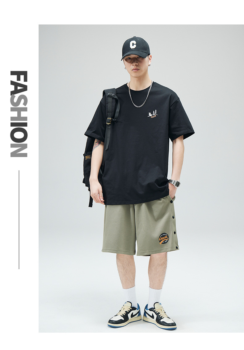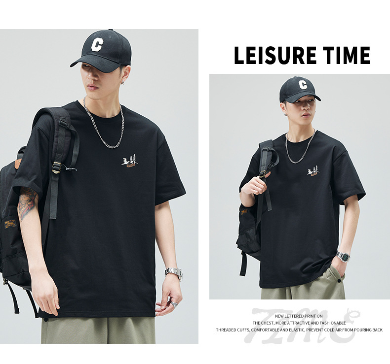 三本针260克重磅纯棉短袖T恤男夏季潮牌宽松大码印花半袖圆领上衣