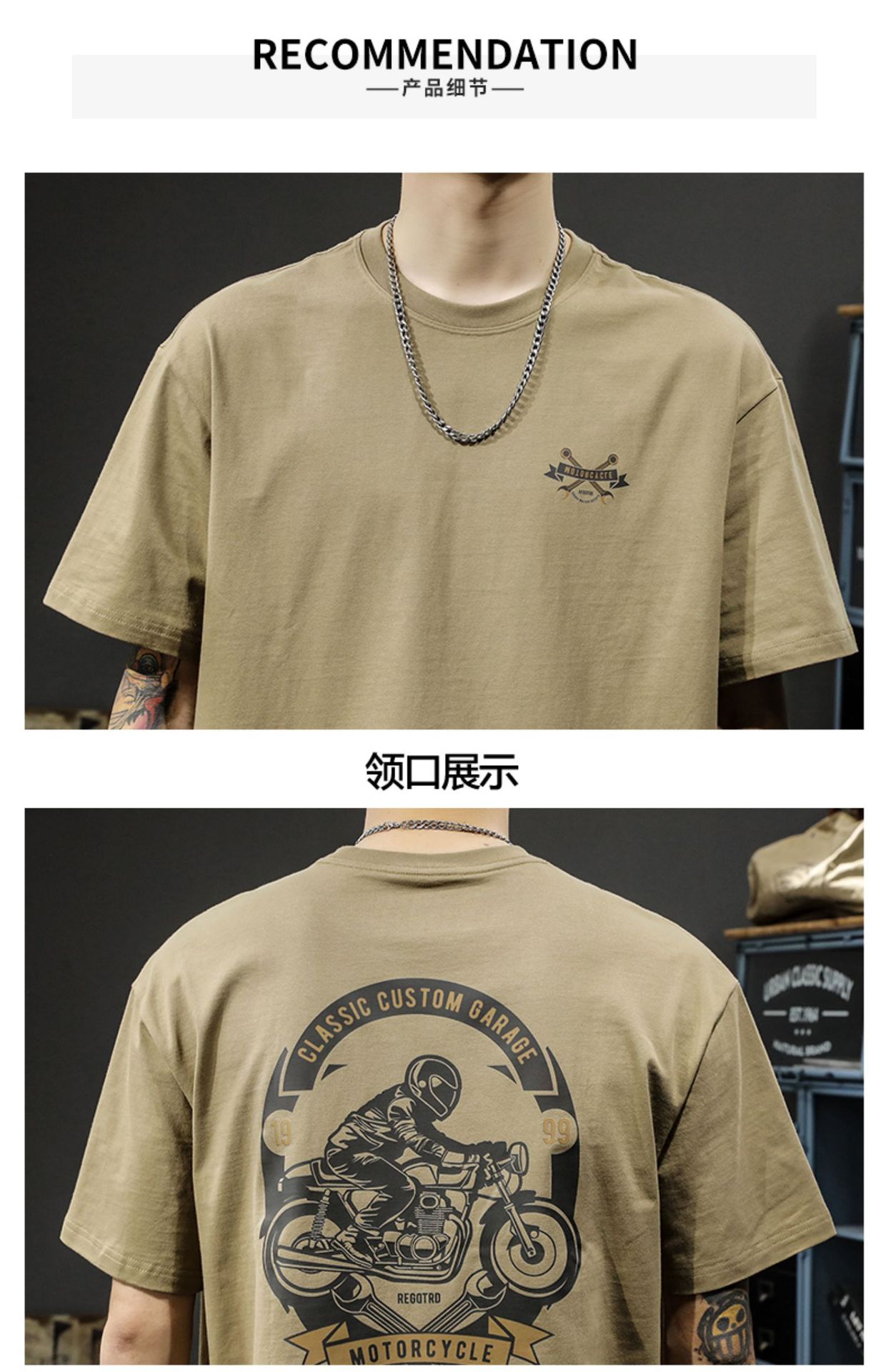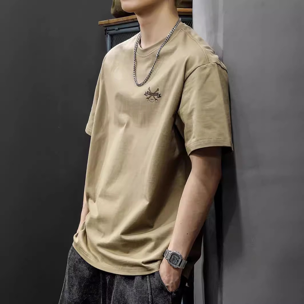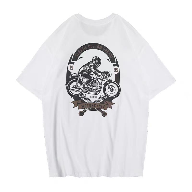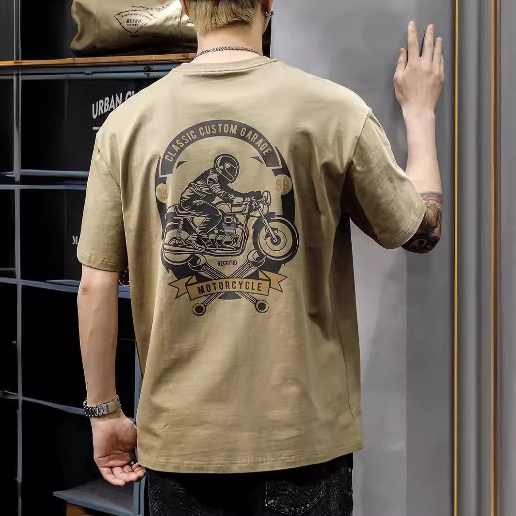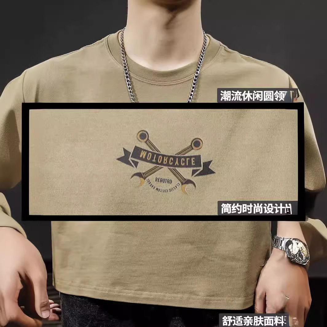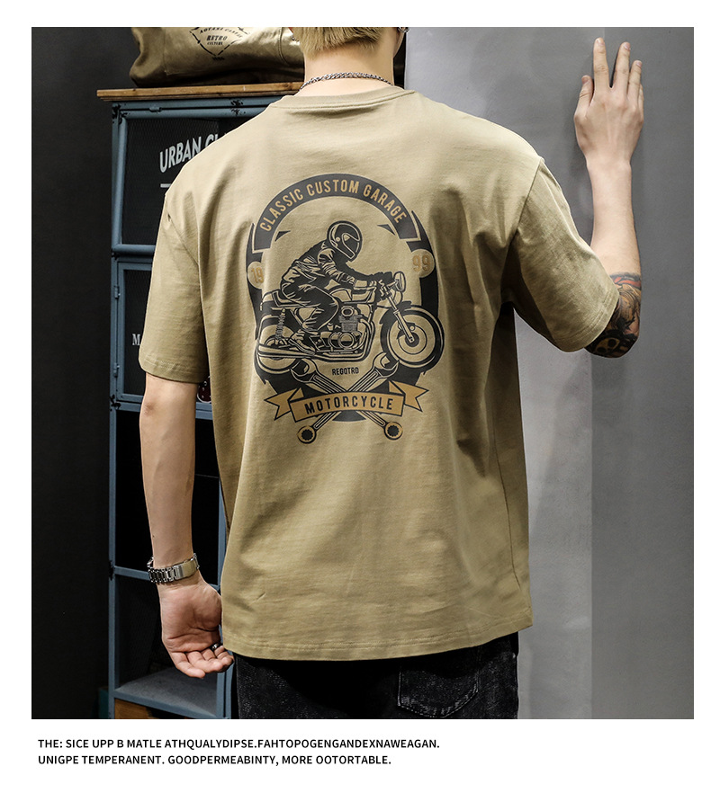 夏季重磅美式复古纯棉短袖t恤男宽松大码ins潮流机车印花半袖体恤