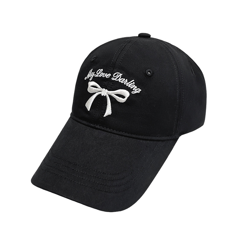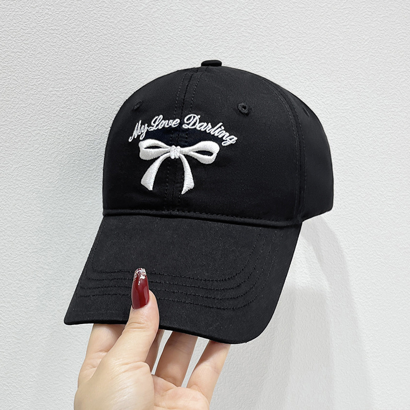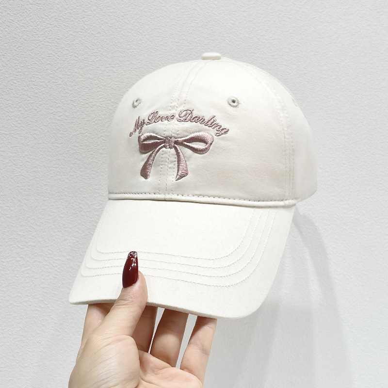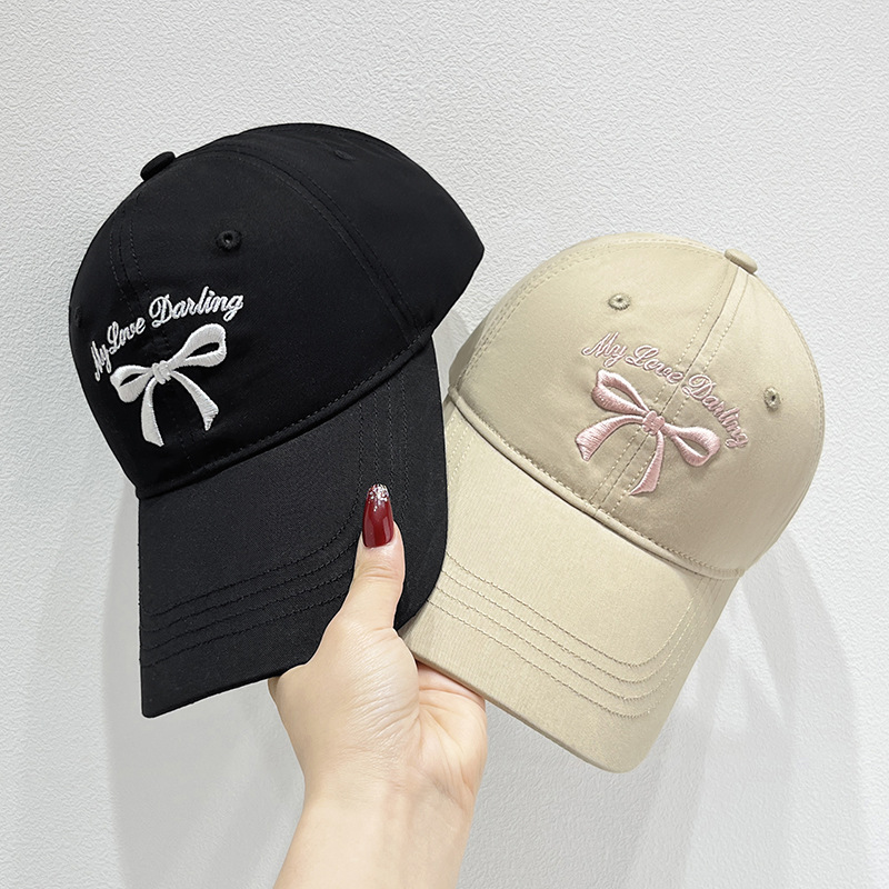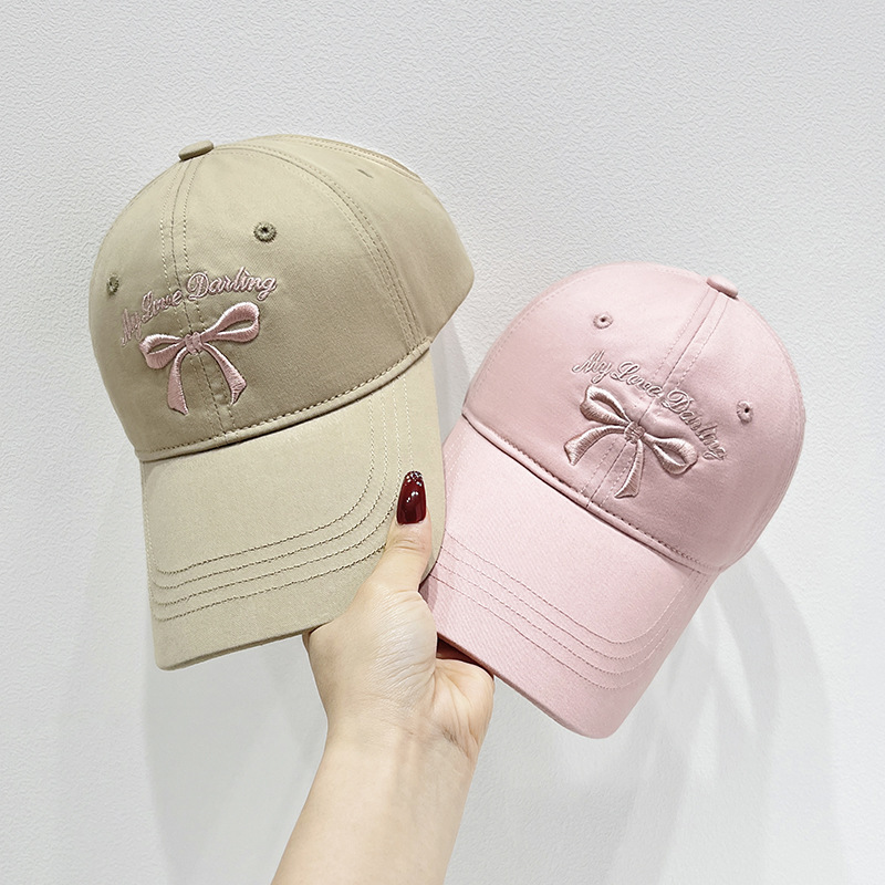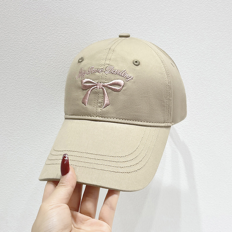 春夏蝴蝶结刺绣空顶帽子女甜美可爱字母新款可扎马尾软顶棒球帽潮