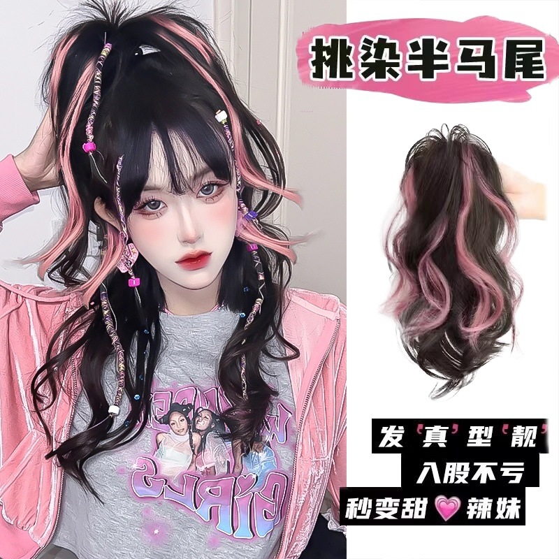马尾假发女仿真发抓夹式瀑布半扎高马尾彩色辫子自然蓬松假发马尾