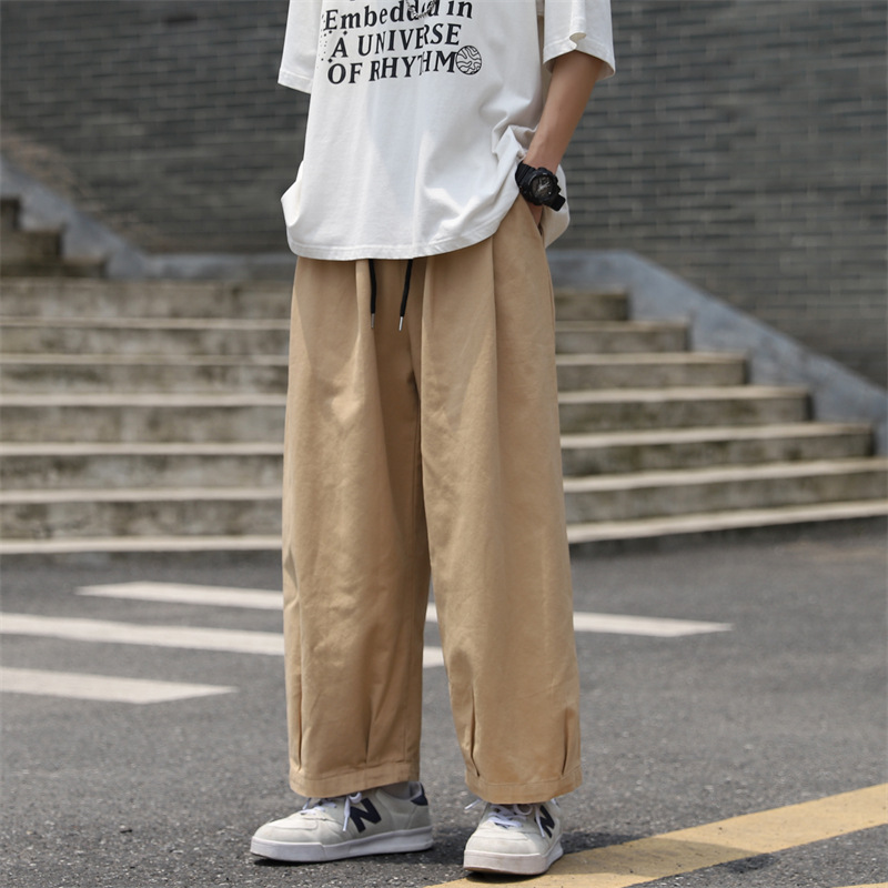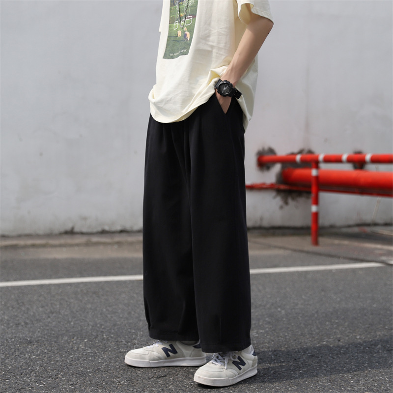 日系古着休闲裤男宽松直筒阔腿裤美式潮牌嘻哈九分工装裤