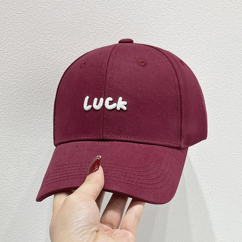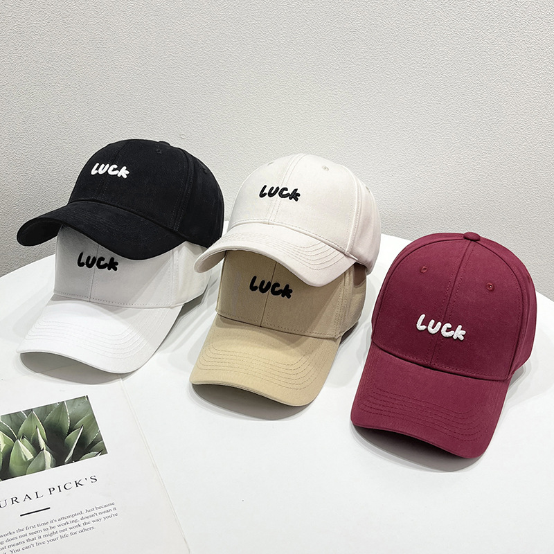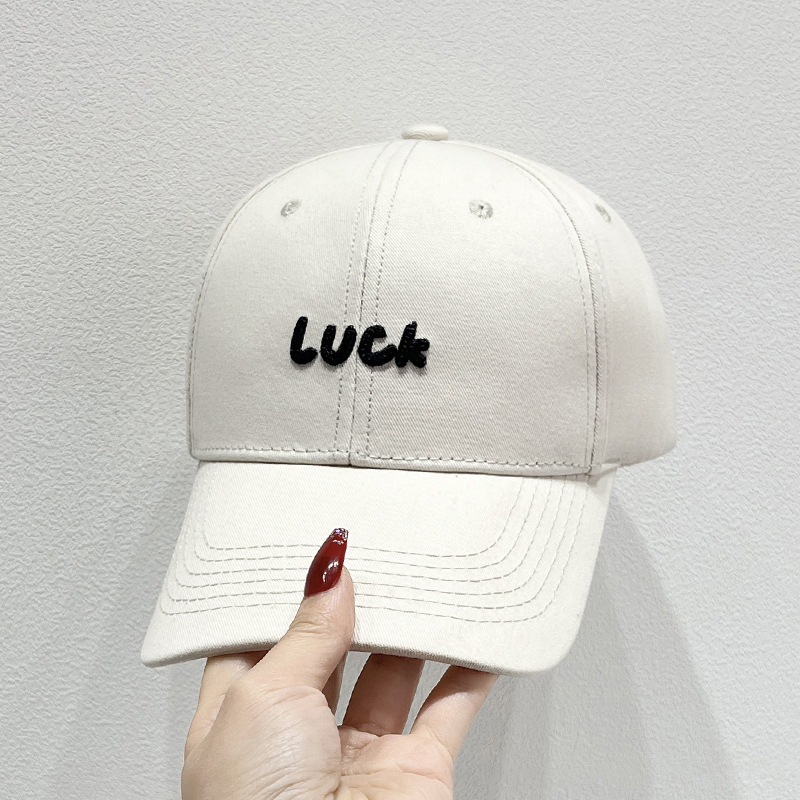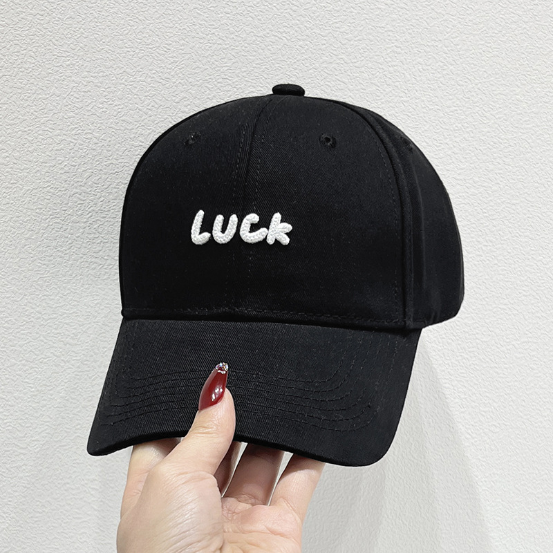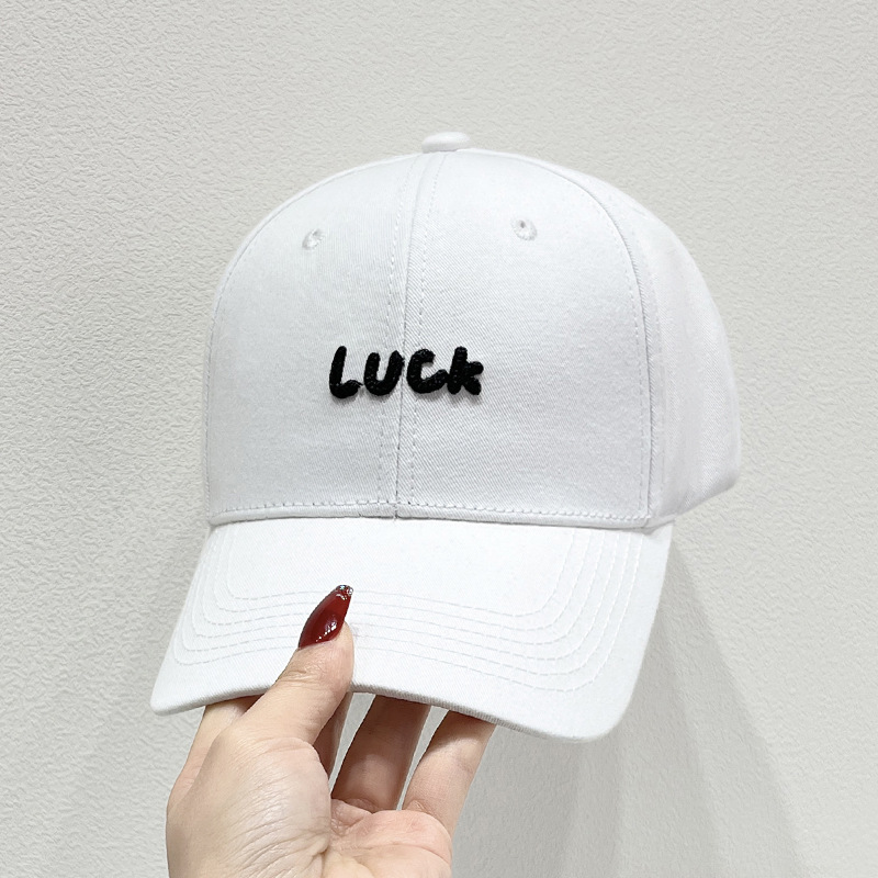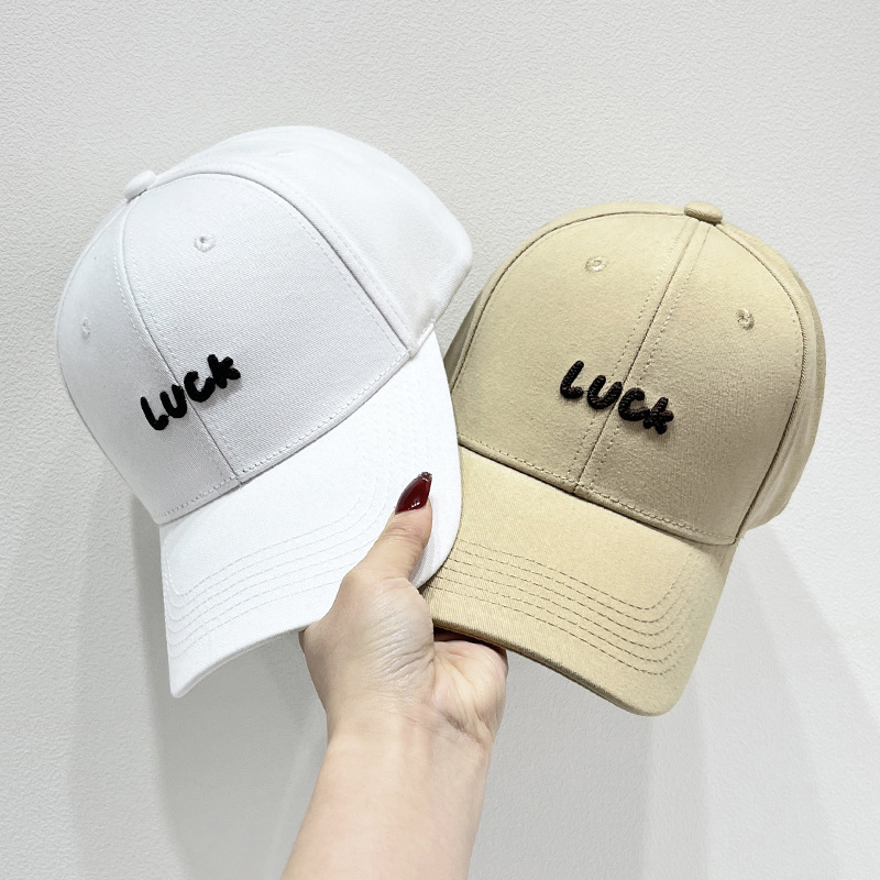 新款韩版百搭Luck字母刺绣硬顶棒球帽子男春夏季遮阳防晒鸭舌帽女