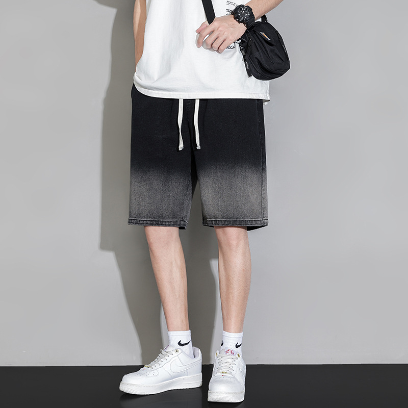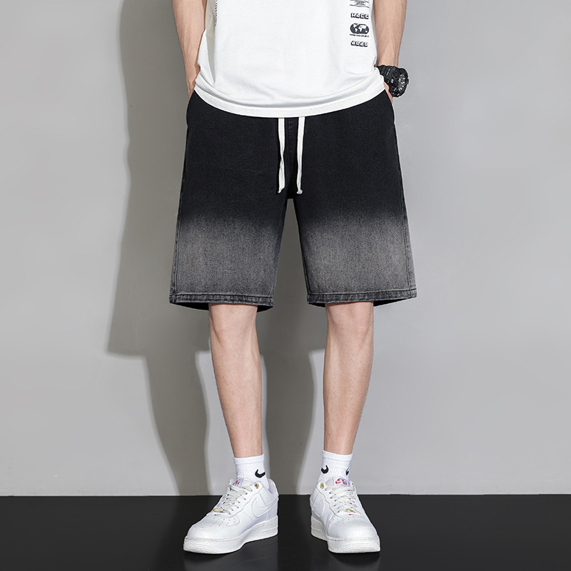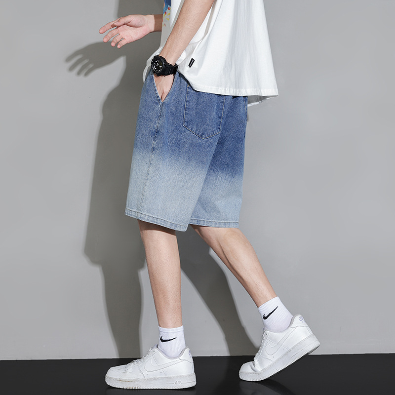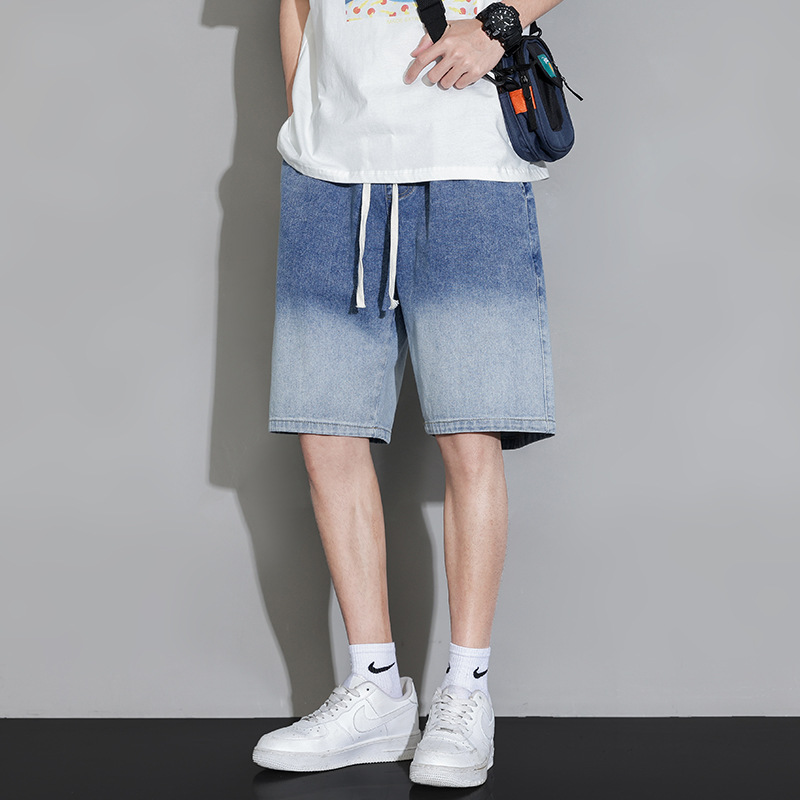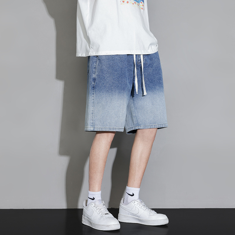 冰丝牛仔短裤男士夏季薄款宽松直筒美式潮牌高街男生五分休闲裤子