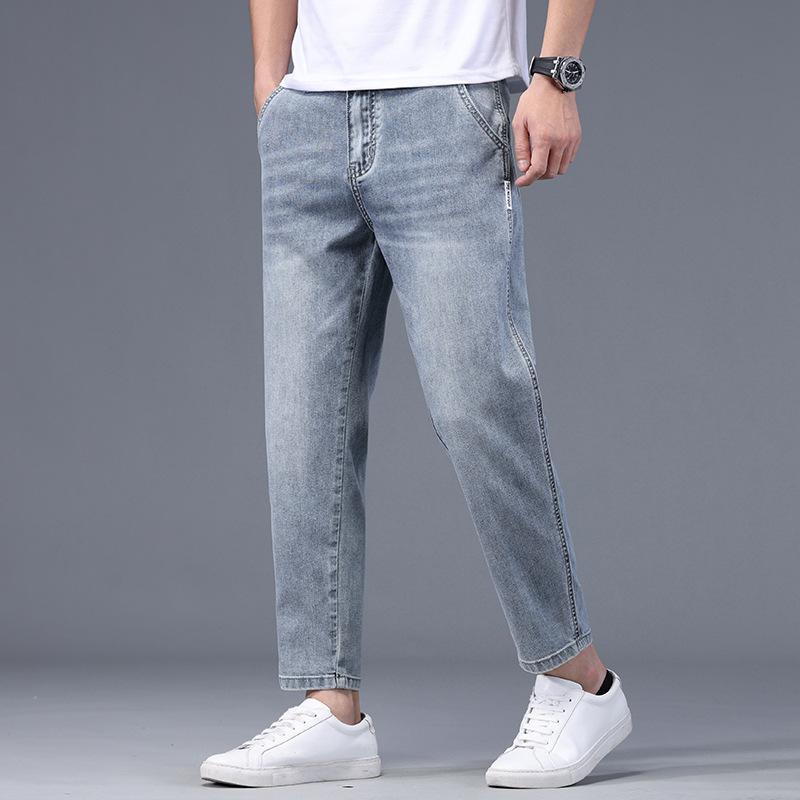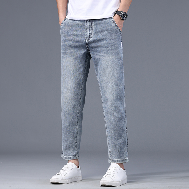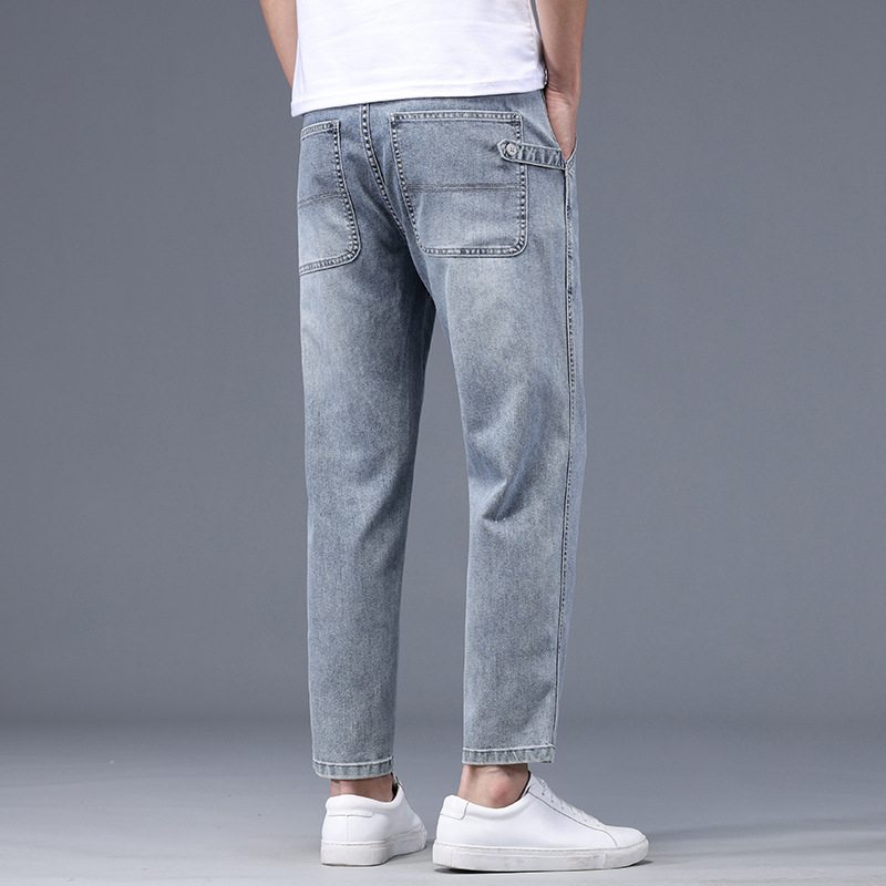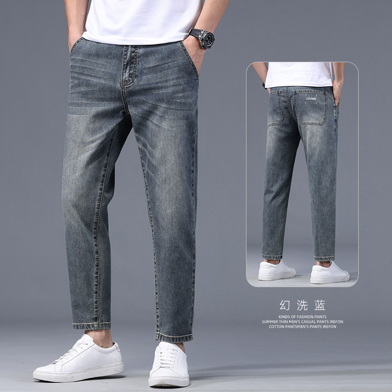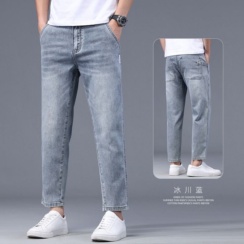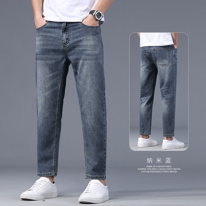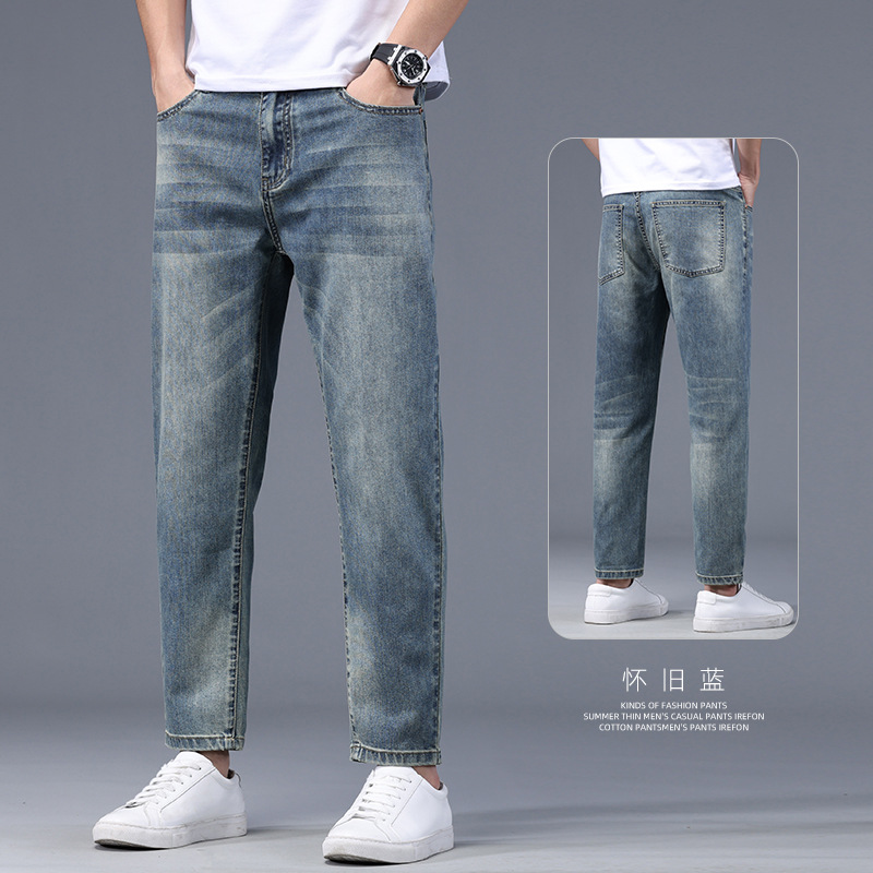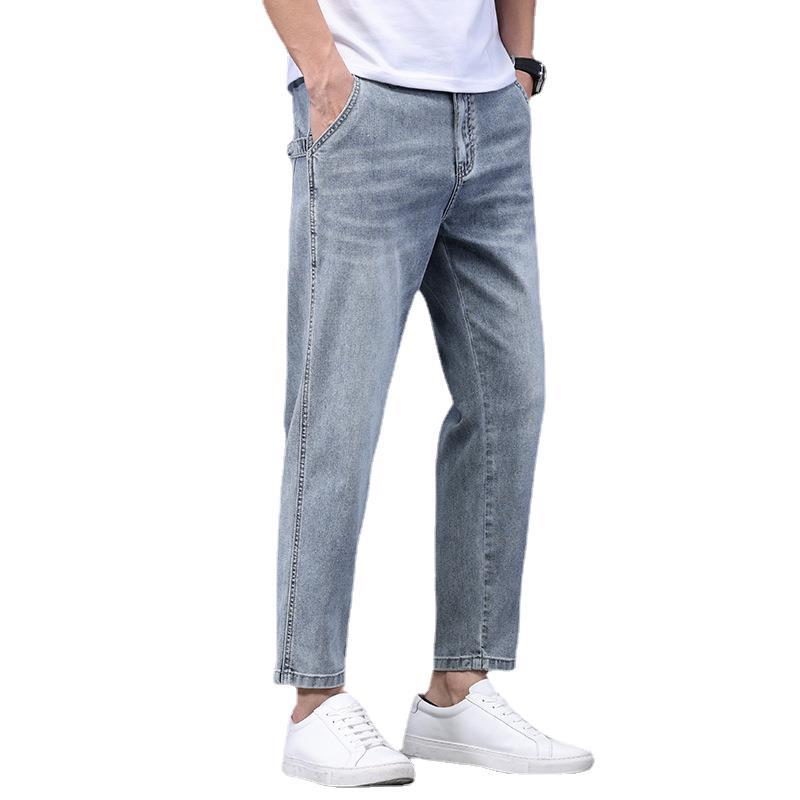直筒牛仔裤男款夏季薄款九分裤美式潮流青少年帅气锥形休闲裤子男