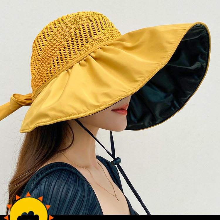 高级感夏款新款遮阳帽黑胶大帽檐显脸小空顶帽女帽