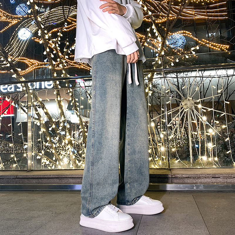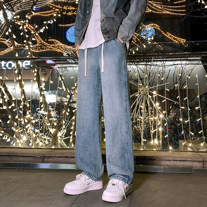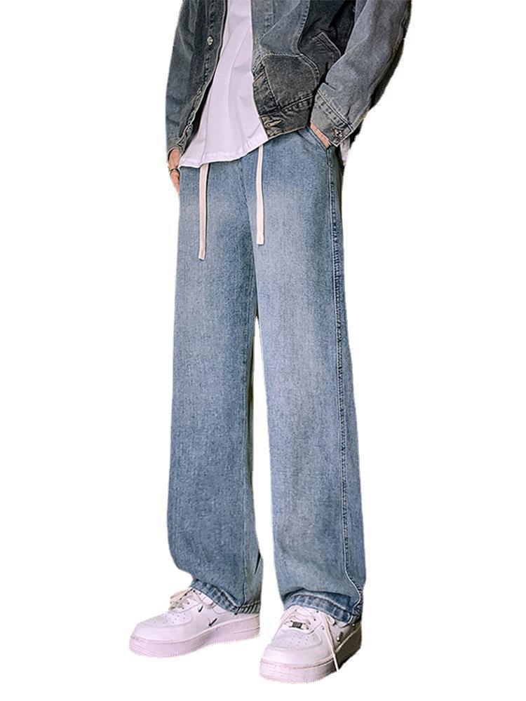夏季薄款牛仔裤男孩大童青少年抽绳初中生高中学生直筒裤子男生