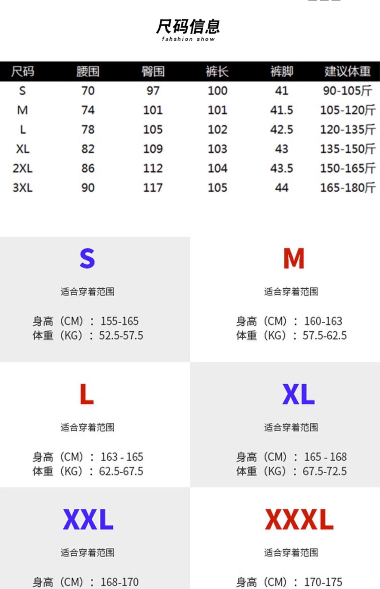 3XL 165-180斤
