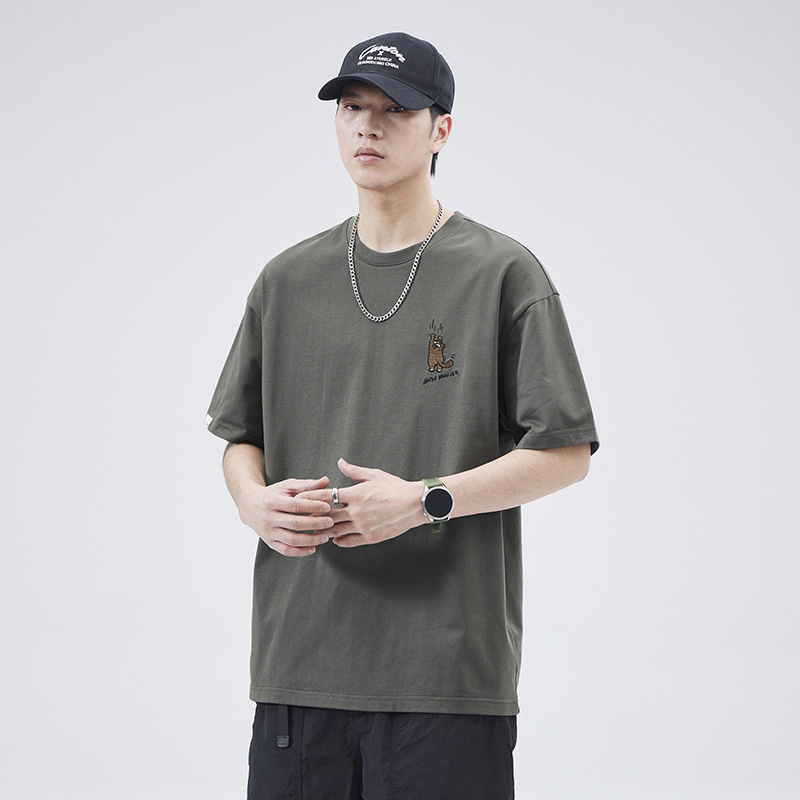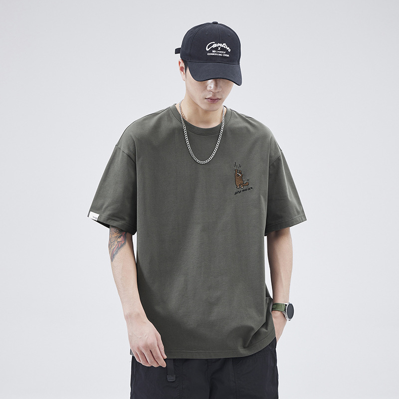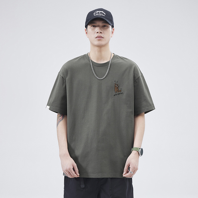 重磅短袖t恤男夏季宽松潮牌圆领大码体恤纯棉休闲半袖百搭上衣服