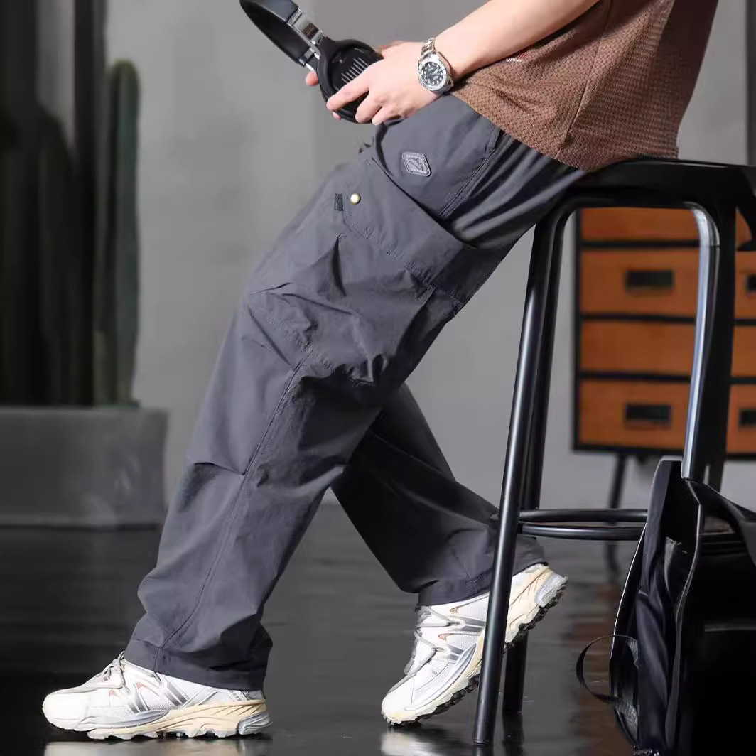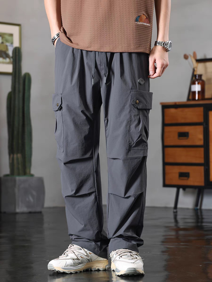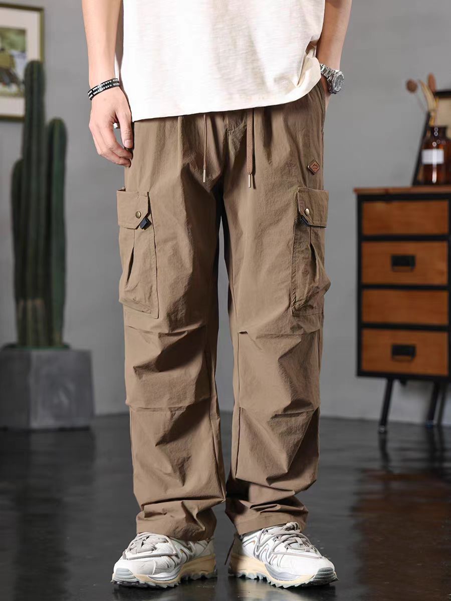 美式大口袋复古工装速干休闲裤男士夏季新款宽松潮牌弹力直筒长裤