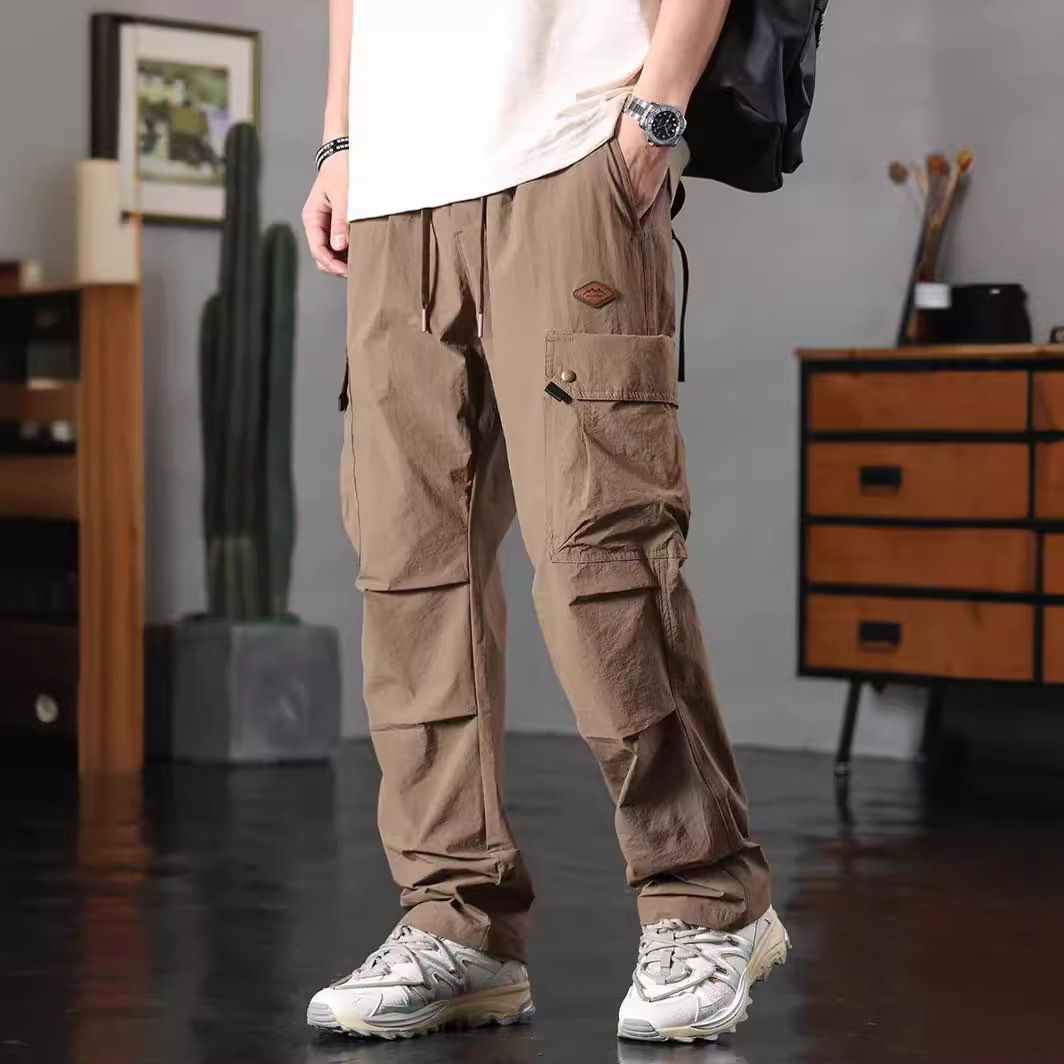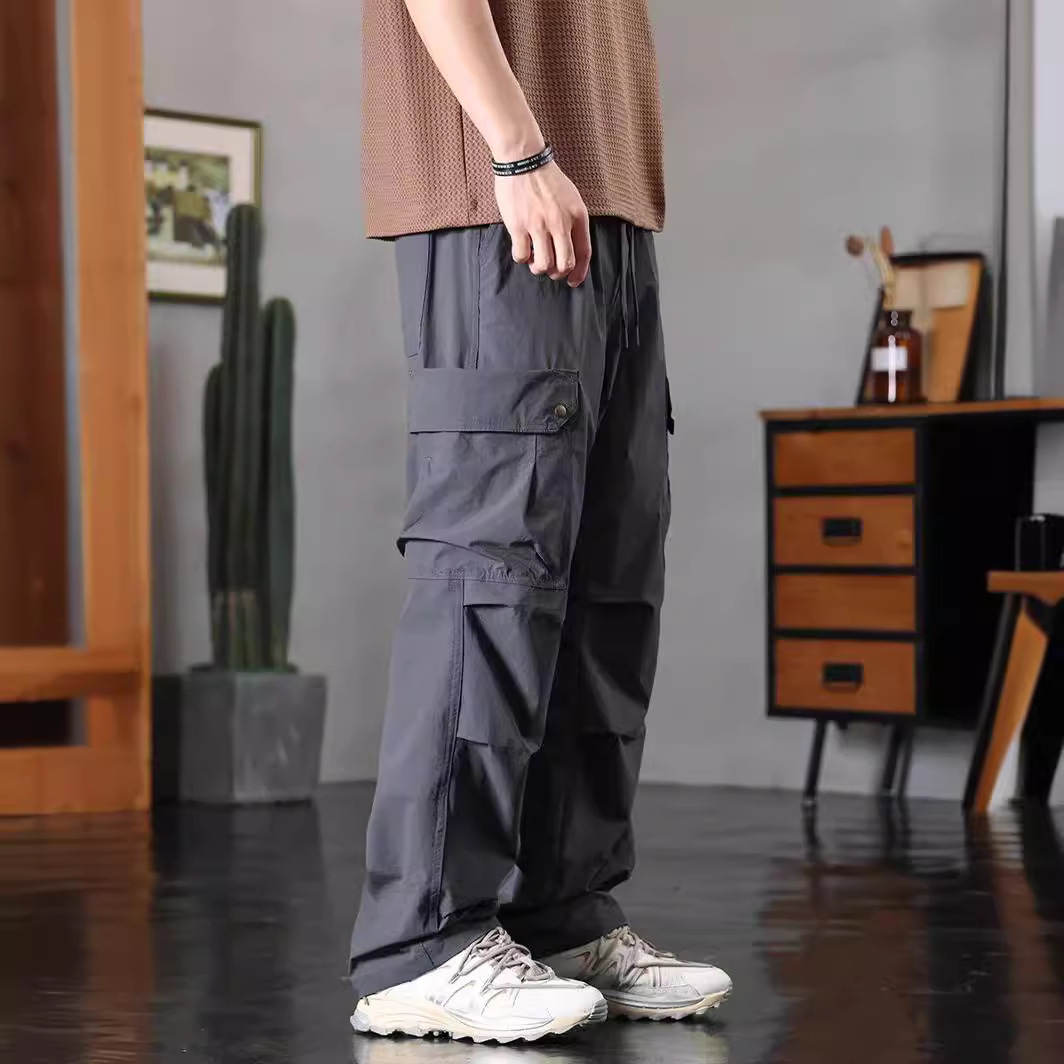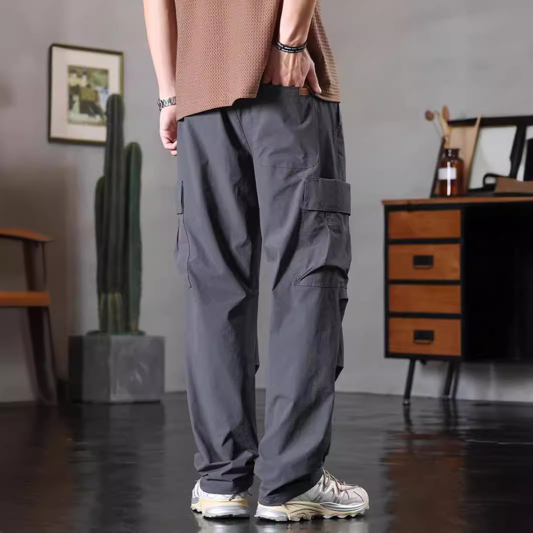 美式大口袋复古工装速干休闲裤男士夏季新款宽松潮牌弹力直筒长裤