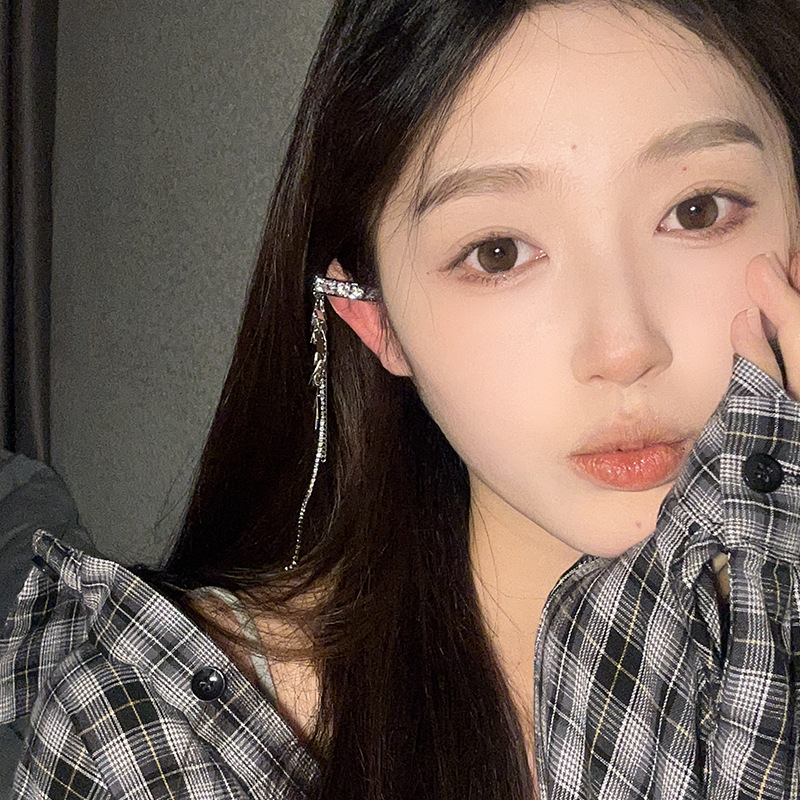 爆闪锆石链条长流苏耳骨夹女小众高级感无耳洞耳夹新款耳饰