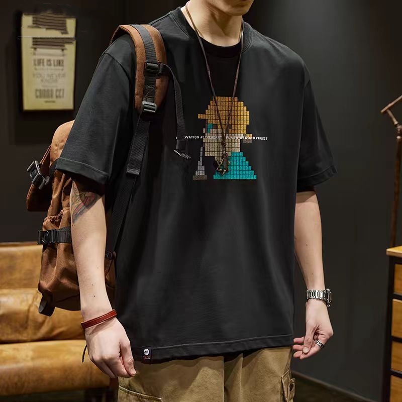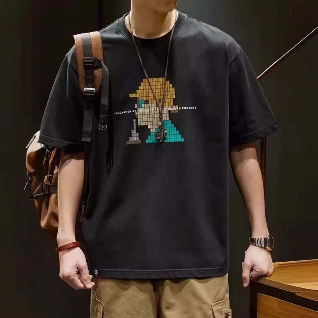 重磅250g印花短袖T恤男夏季潮流ins宽松大码纯棉圆领上衣半袖体恤