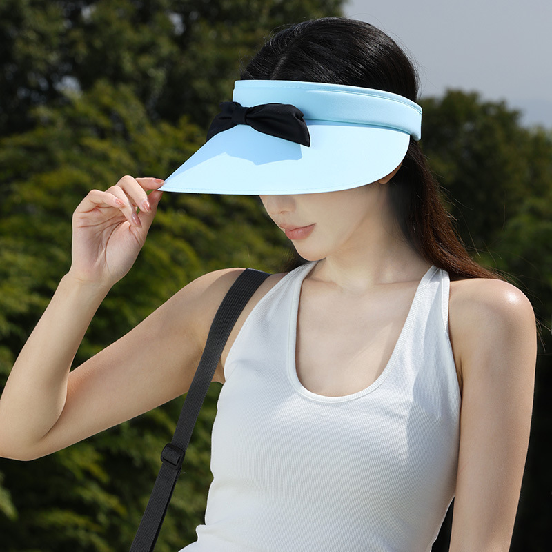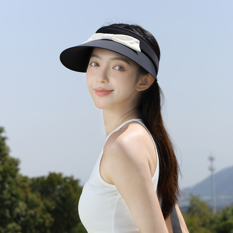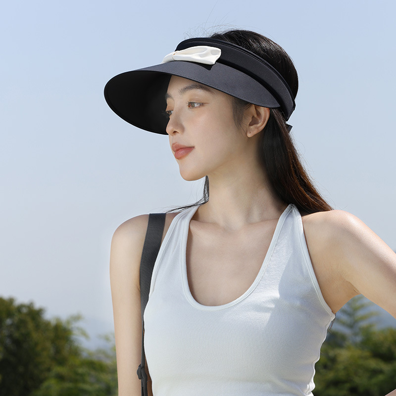 帽子女夏季遮阳蝴蝶结空顶帽网红大檐防紫外线太阳帽户外防晒帽女
