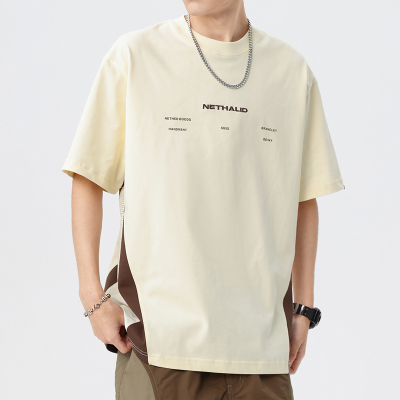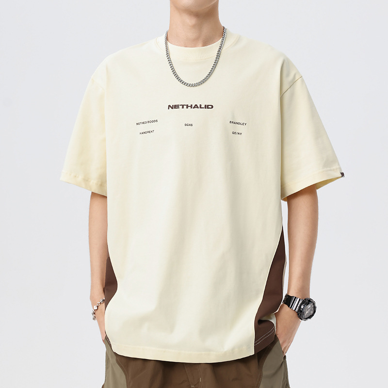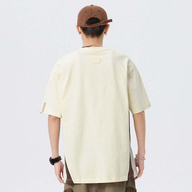 拼接撞色设计短袖男夏季2025新款美式复古250g重磅T恤男纯棉上衣