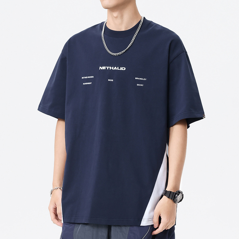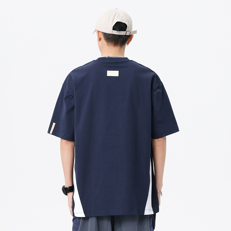 美式拼接撞色短袖t恤男280g重磅宽松大码半袖夏季新款透气体恤潮T