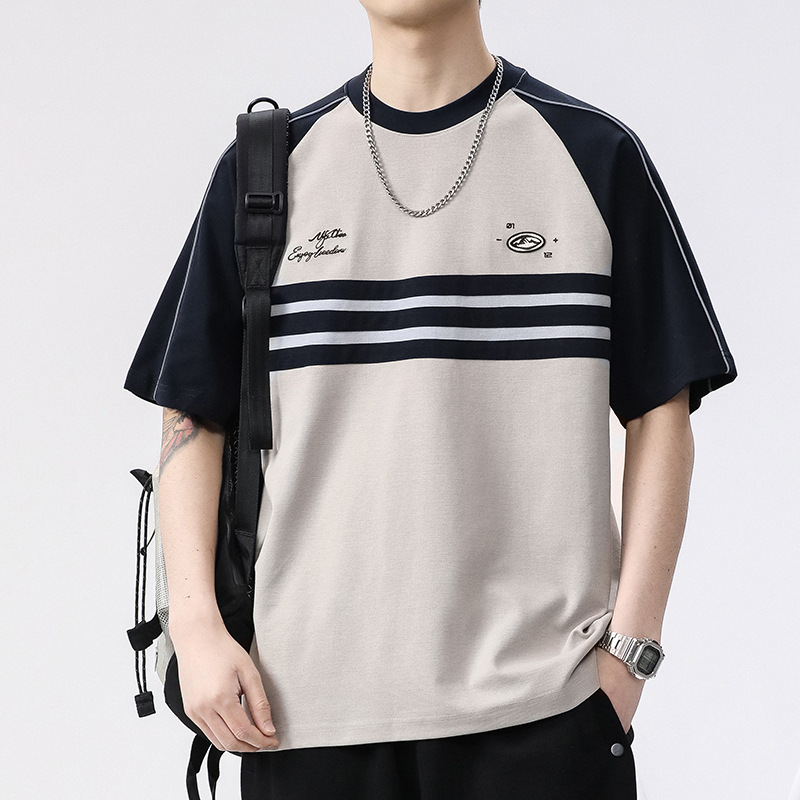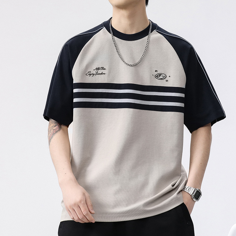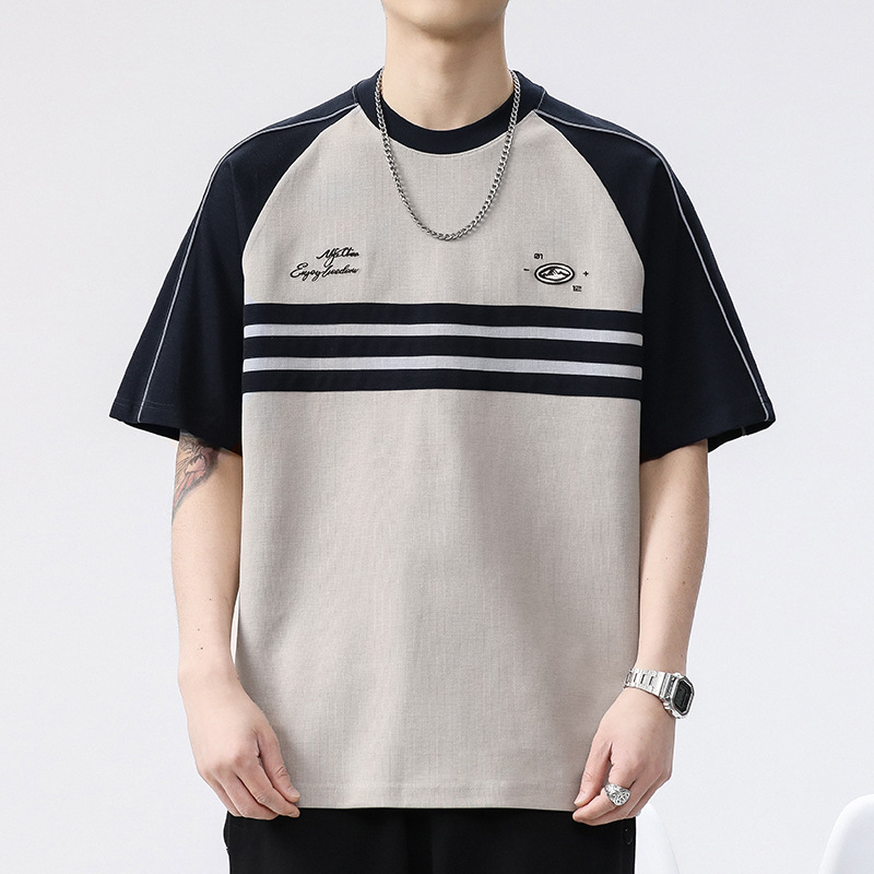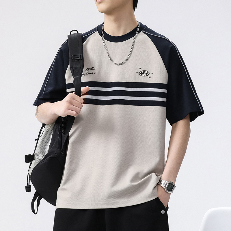 美式复古230g圆领短袖T恤男休闲运动风夏季潮牌宽松百搭半袖上衣