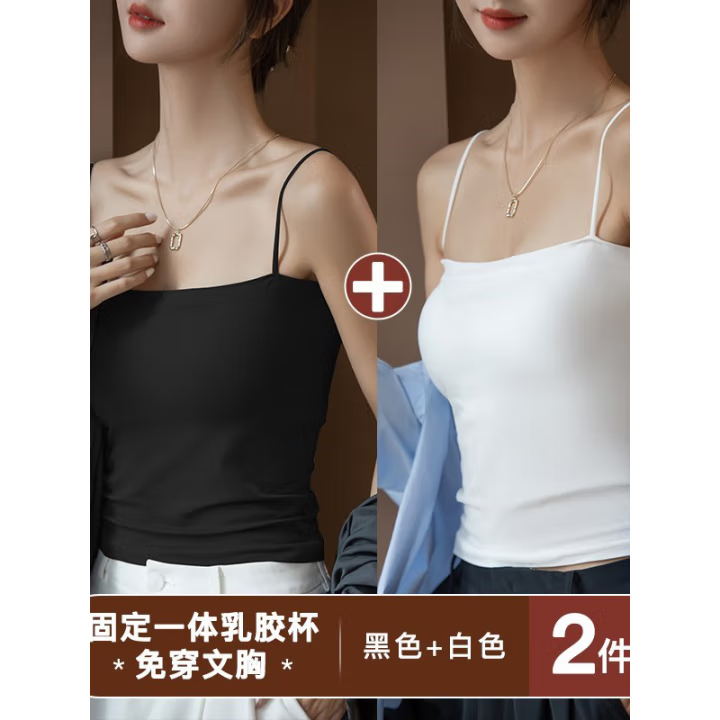小吊带背心女打底抹胸外穿一字肩裹胸美背内搭带胸垫内衣春夏2件
