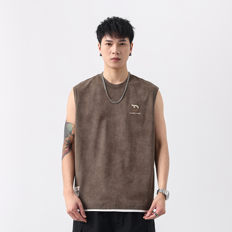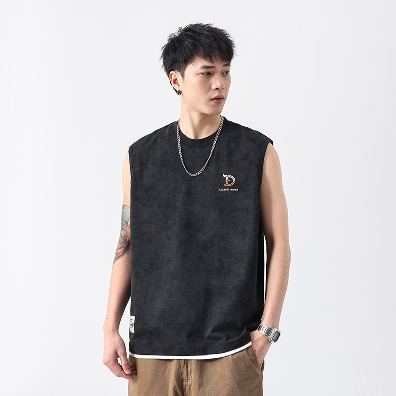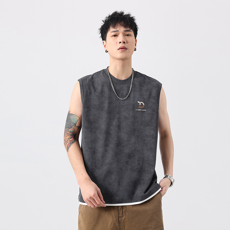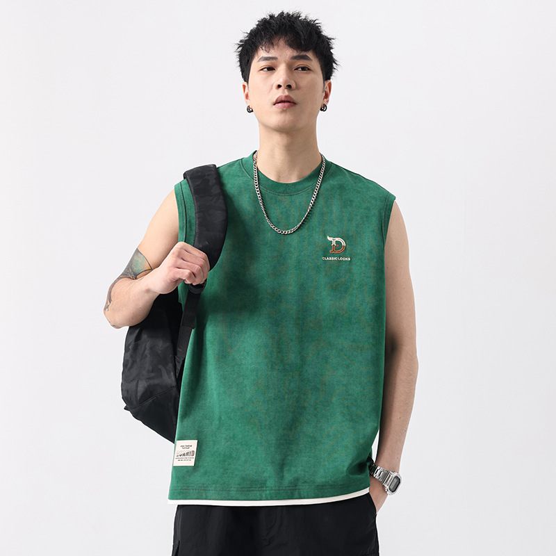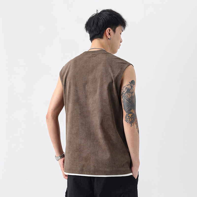 美式高街重磅纯棉背心男宽松大码痞帅运动坎肩夏季ins潮牌无袖T恤