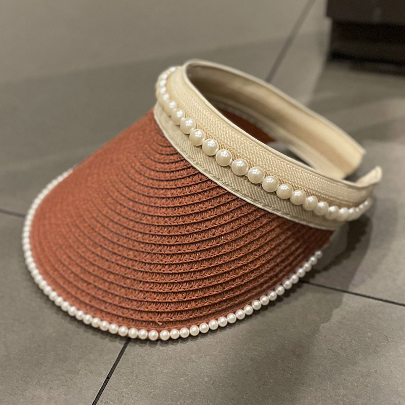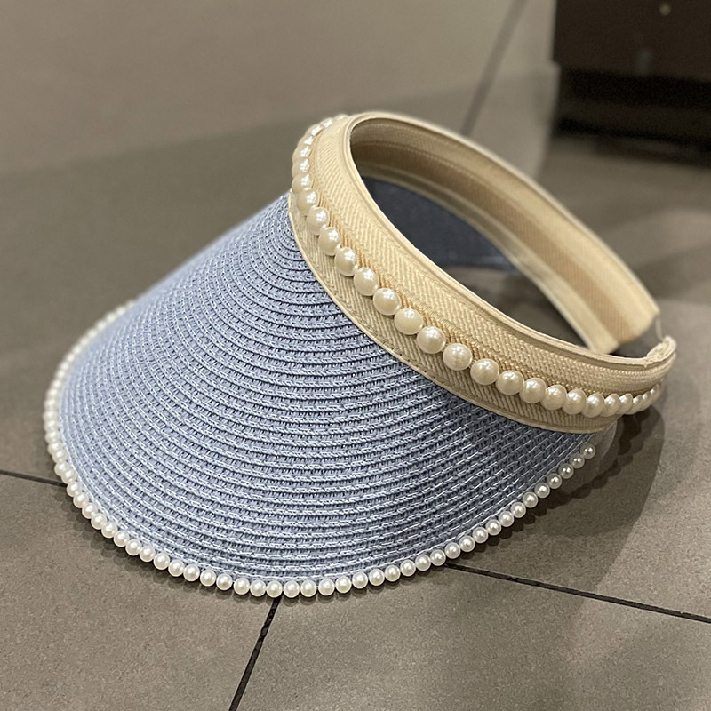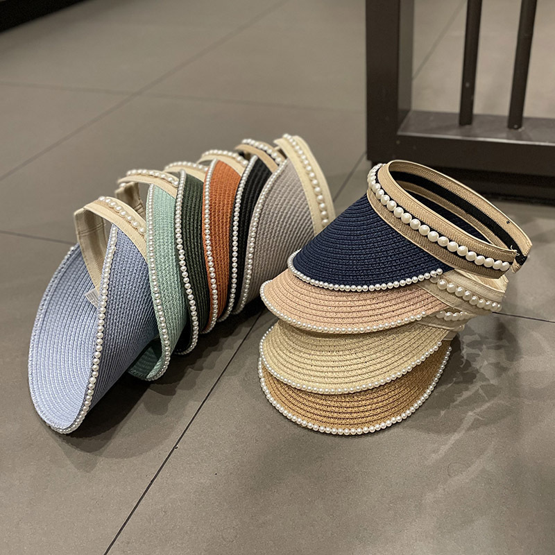 草编珍珠空顶帽子韩版ins~简约出游女春夏潮时尚百搭遮阳发箍