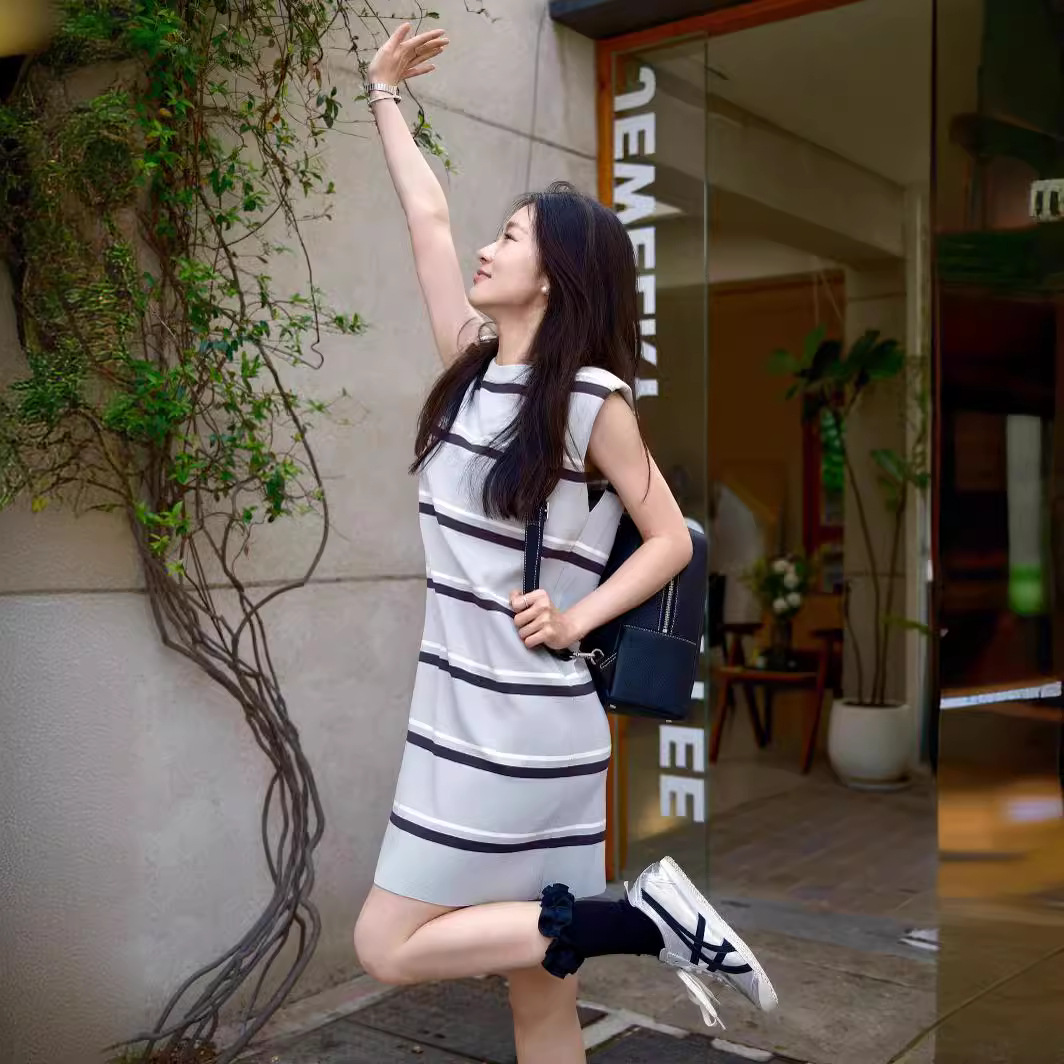 松弛感穿搭廓形连衣裙女夏装减龄宽松无袖外穿休闲百搭条纹背心裙