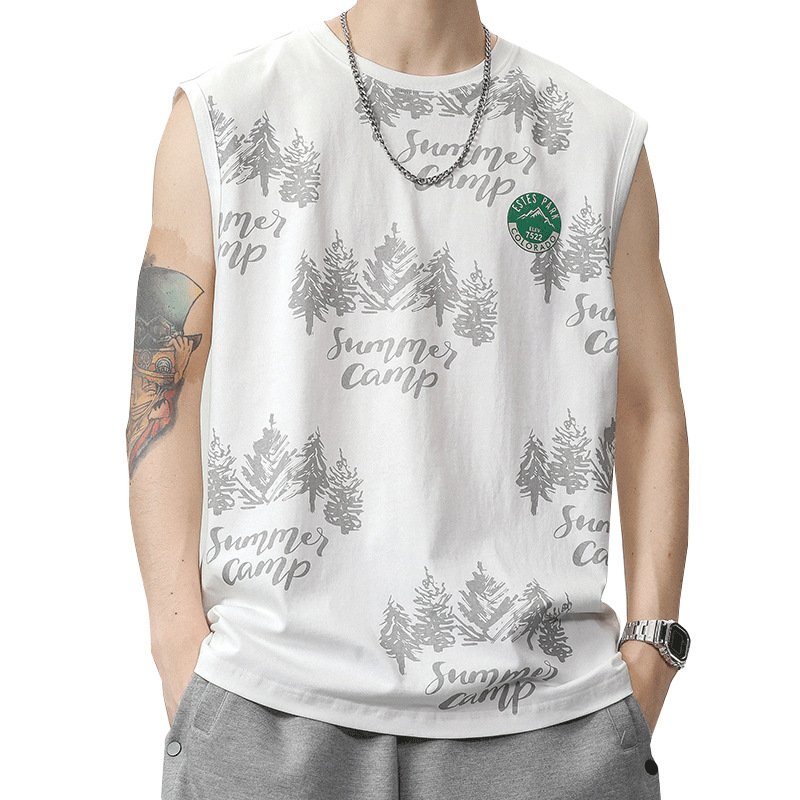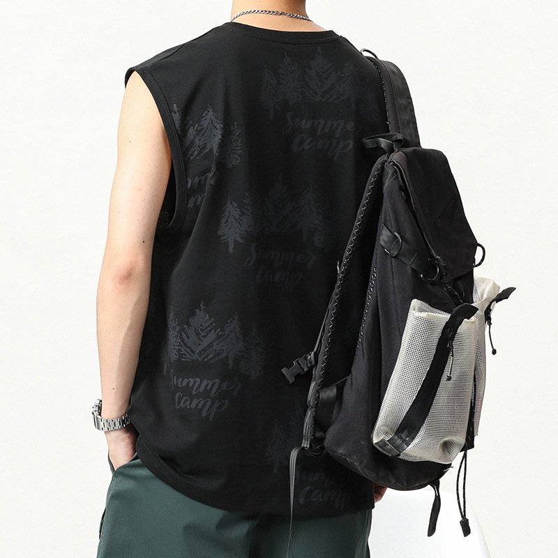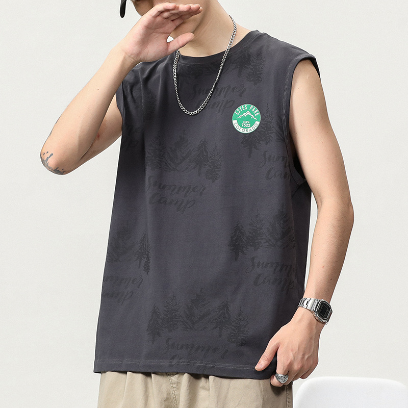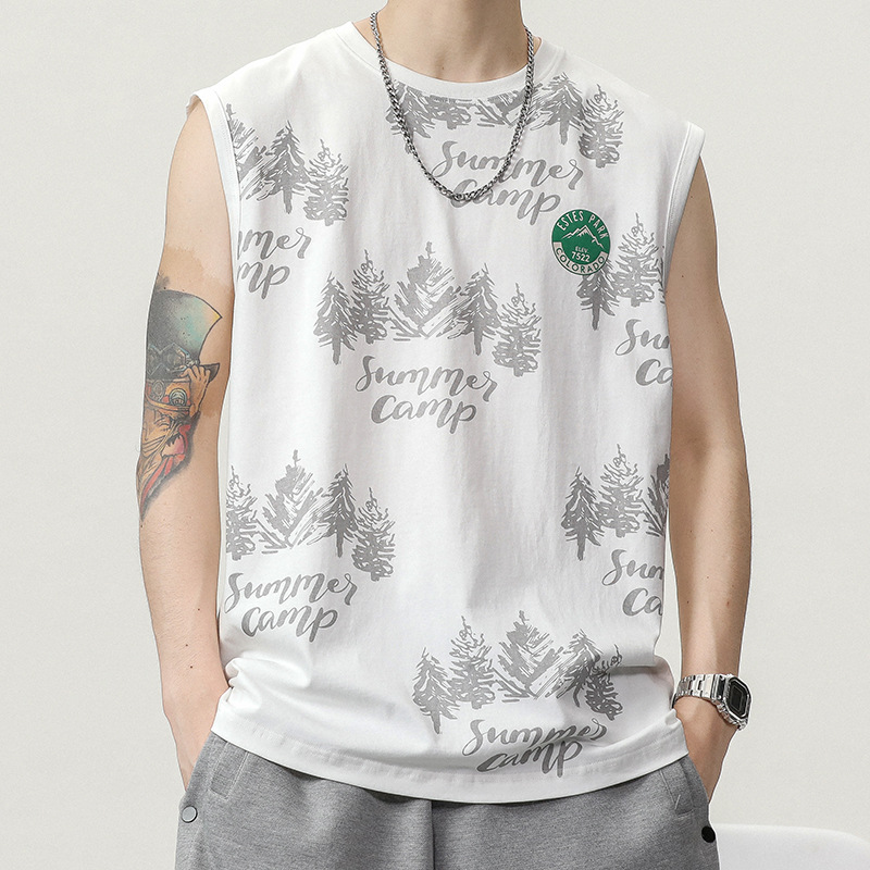夏季纯棉无袖t恤背心男宽松潮牌ins坎肩短袖男运动大码上衣潮