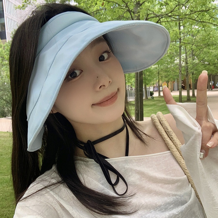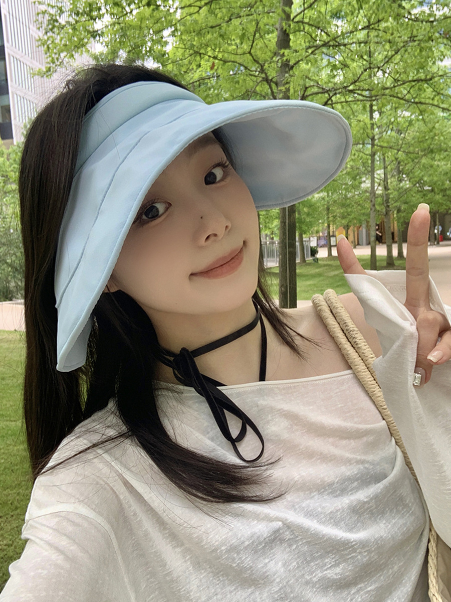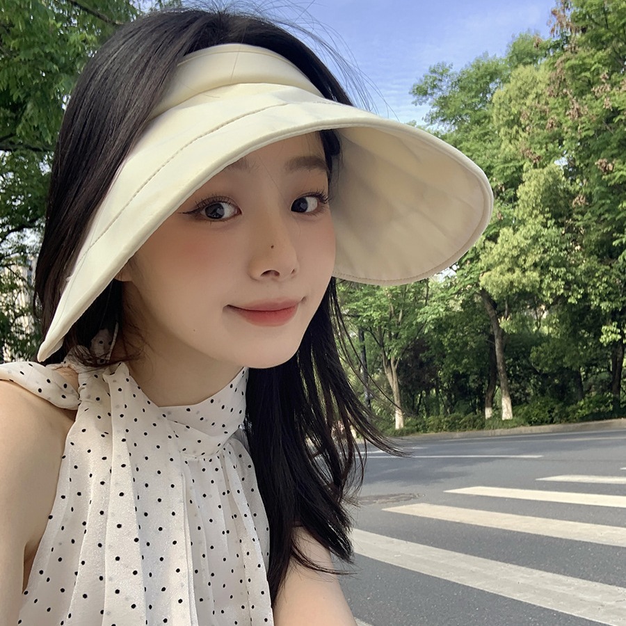大帽檐蛋卷遮阳空顶帽夏季女户外出游防晒帽防紫外线可折叠太阳帽