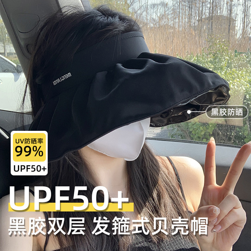 夏季可折叠贝壳帽遮阳防紫外线空顶帽女户外出游骑行防晒太阳帽潮