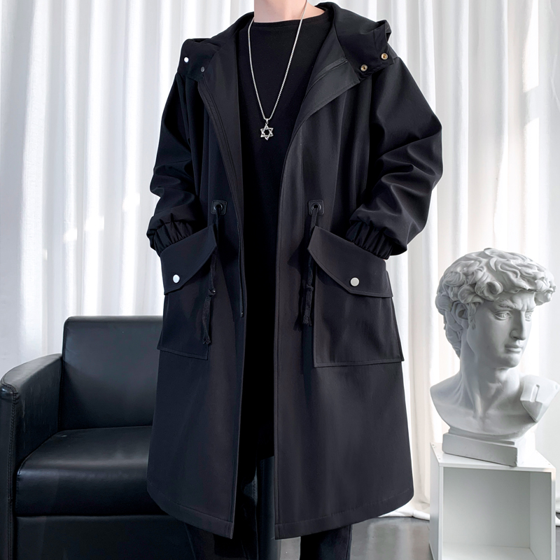 高级感风衣男士春秋季中长款连帽外套英伦风长款过膝大衣斗篷披风