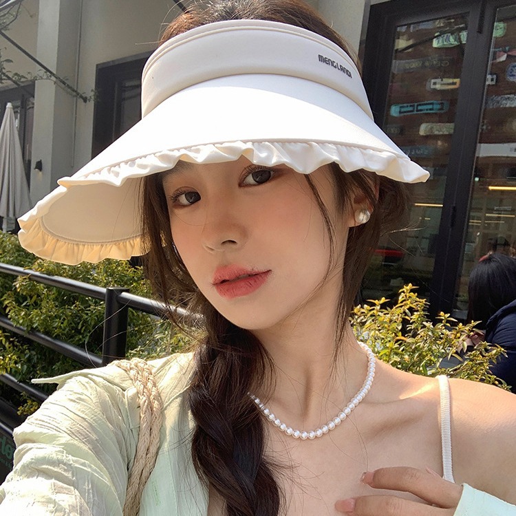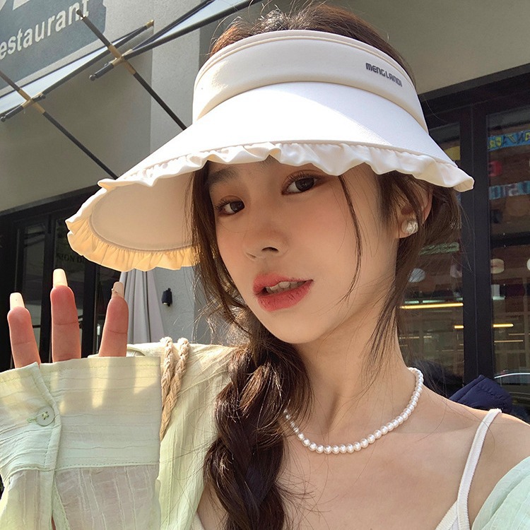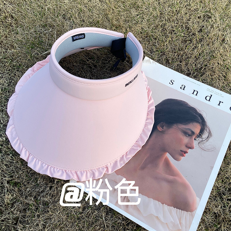 帽子女冰丝空顶防晒太阳帽ins 花边加大檐防紫外线夏季骑车遮阳帽