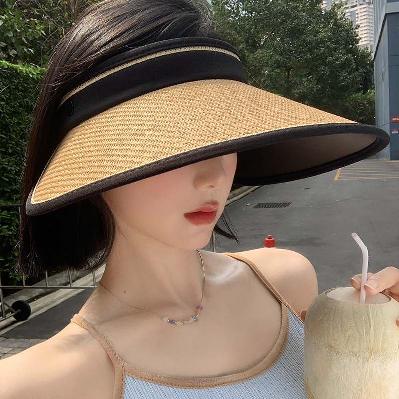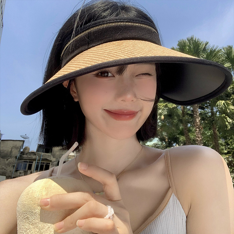 太阳帽防紫外线沙滩遮阳黑胶空顶防晒帽子女夏季大帽檐遮全脸草帽