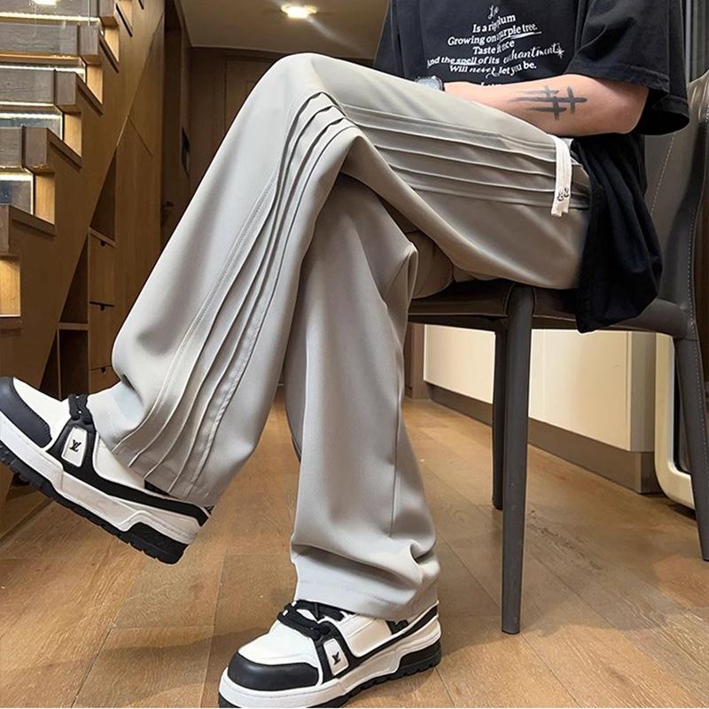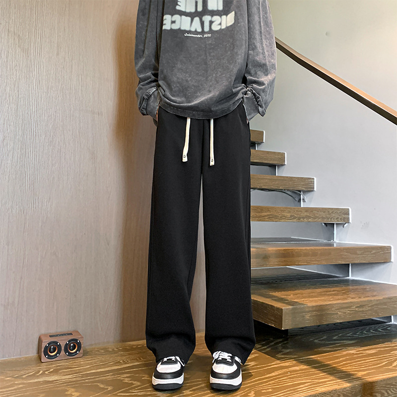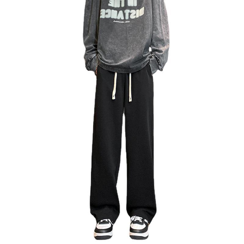 潮牌宽松冰丝卫裤男夏季美式复古灰色阔腿裤子青少年垂感休闲裤潮
