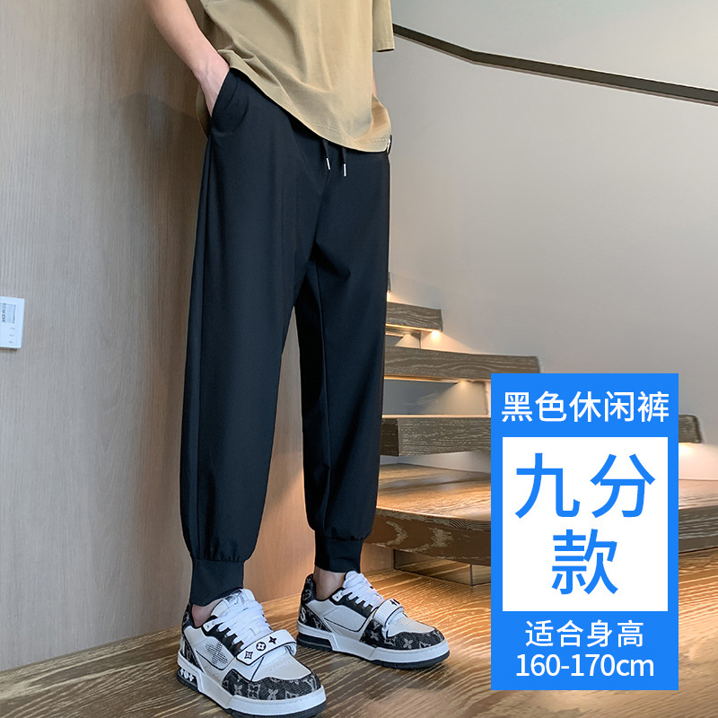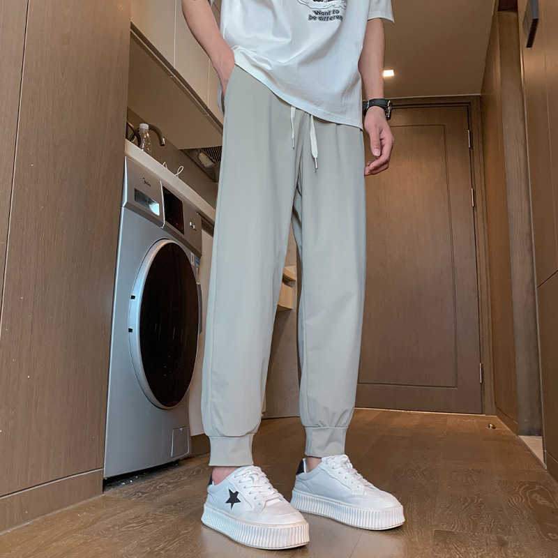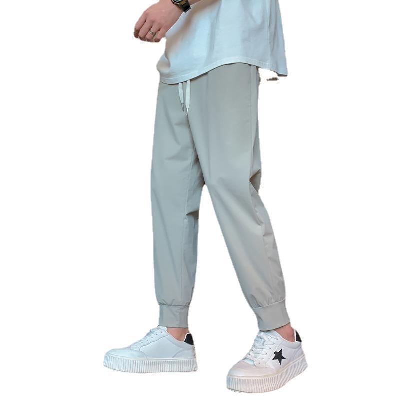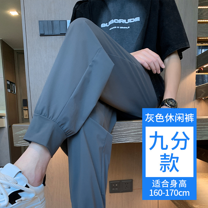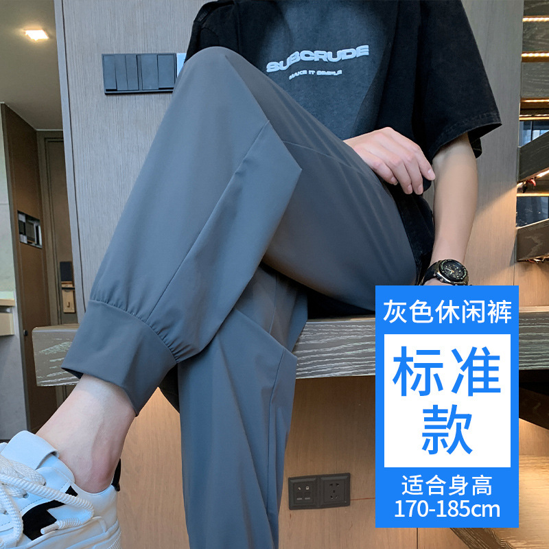裤子男款夏季薄款灰色束脚运动裤冰丝速干潮牌新款休闲裤卫裤