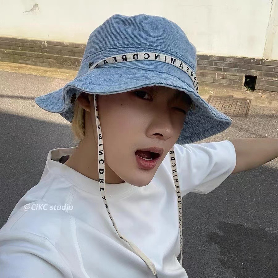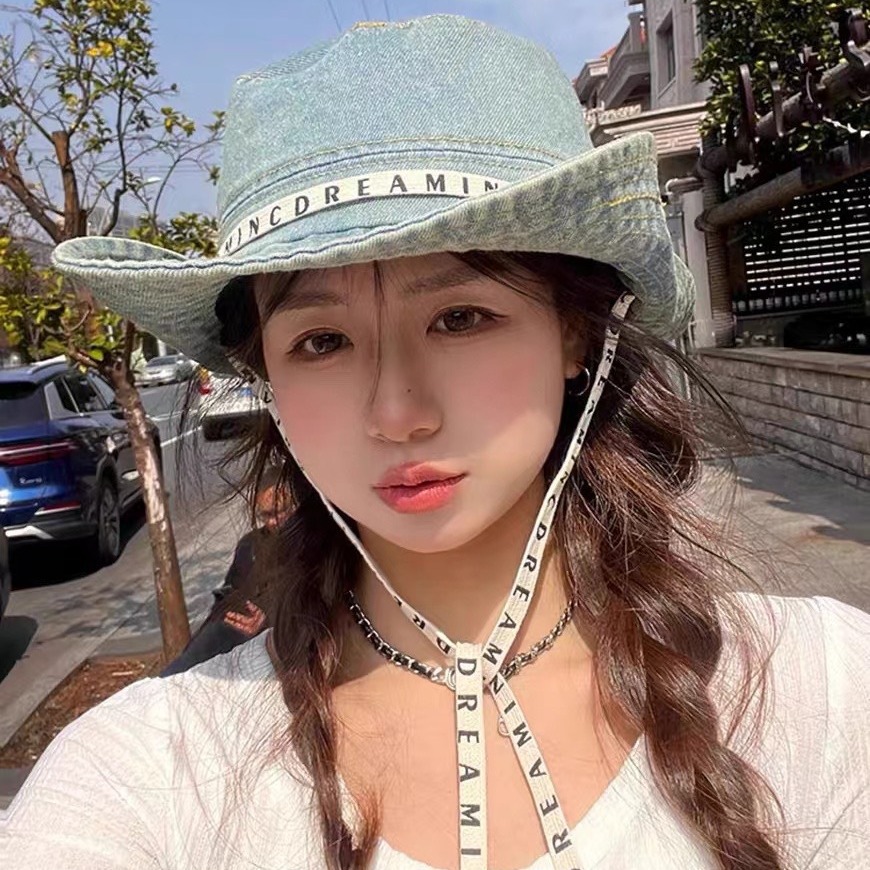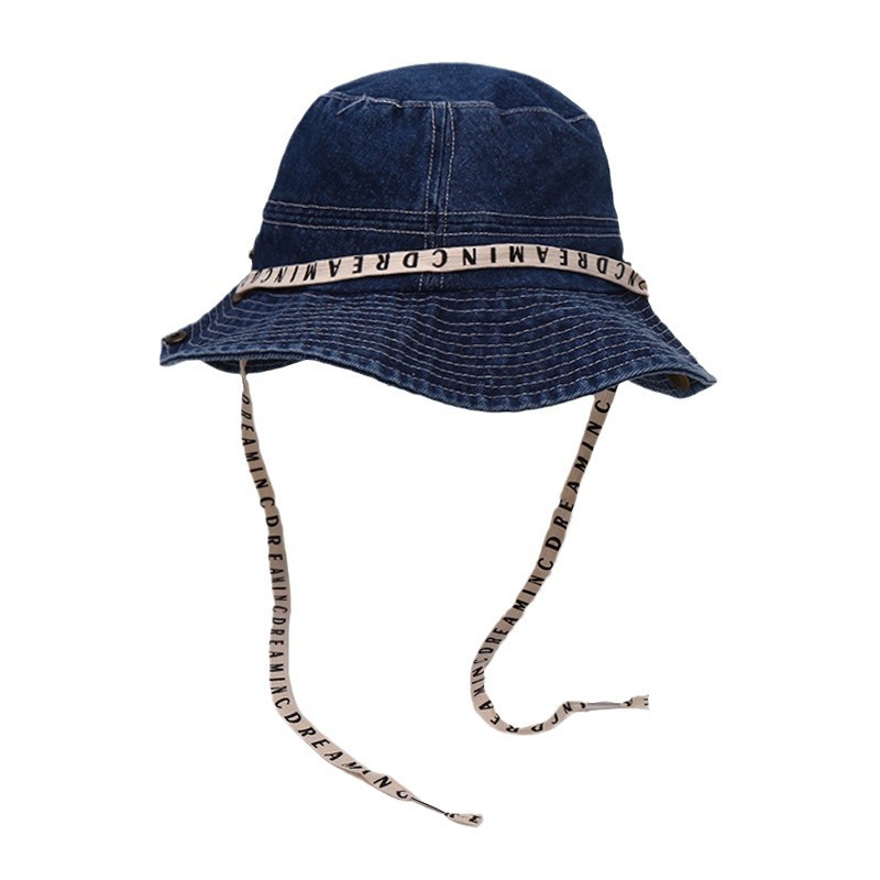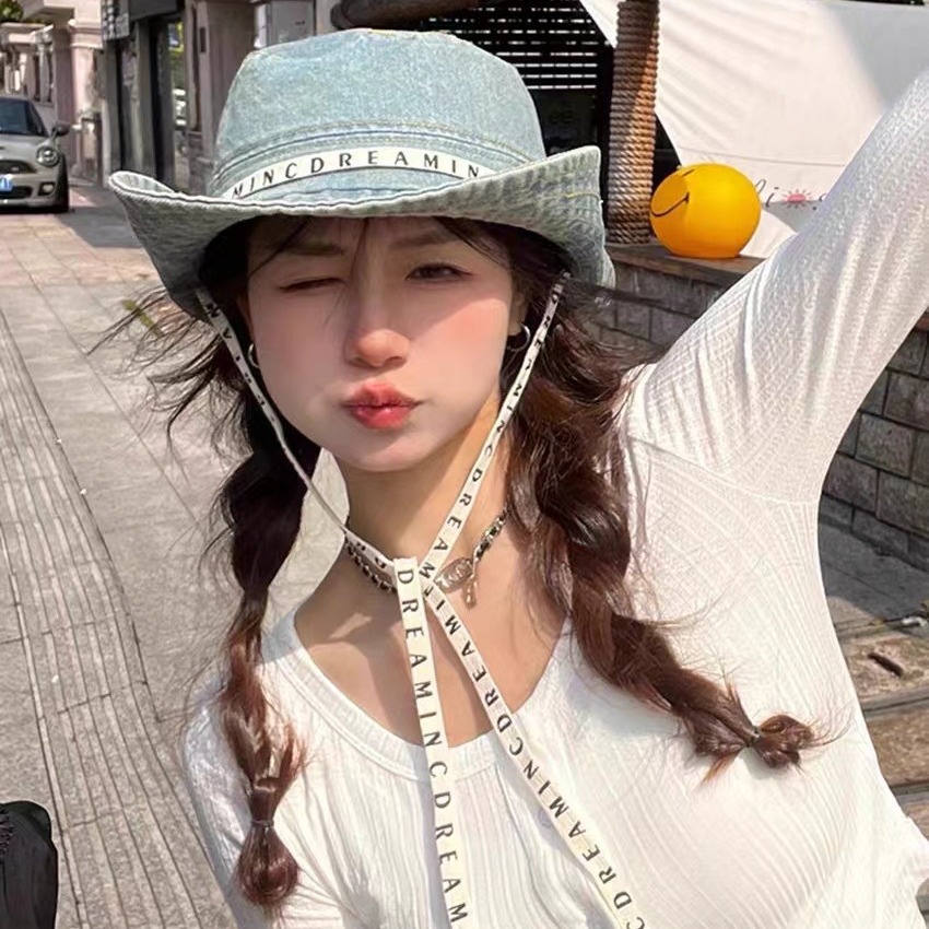 西部牛仔登山帽韩国复古字母绑带系绳渔夫帽女春夏季休闲百搭盆帽