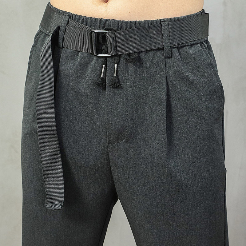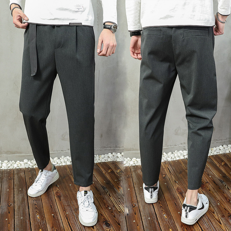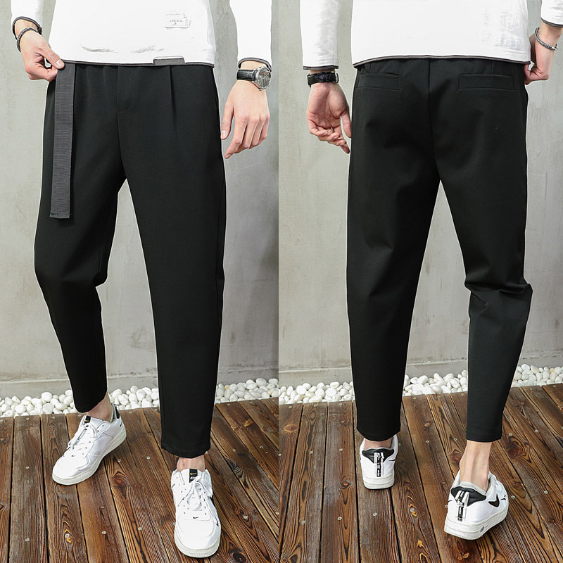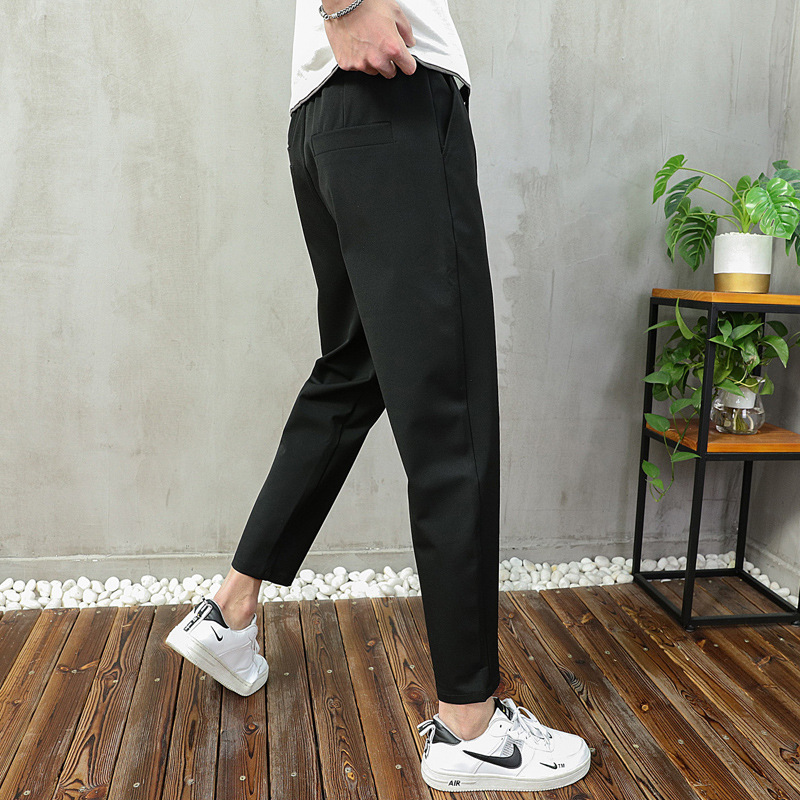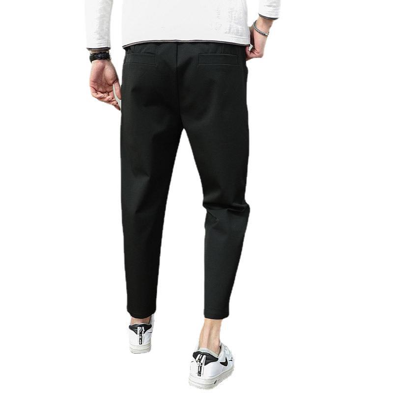 裤子男士夏季韩版潮流宽松大码直筒休闲商务西裤男弹力黑色九分裤