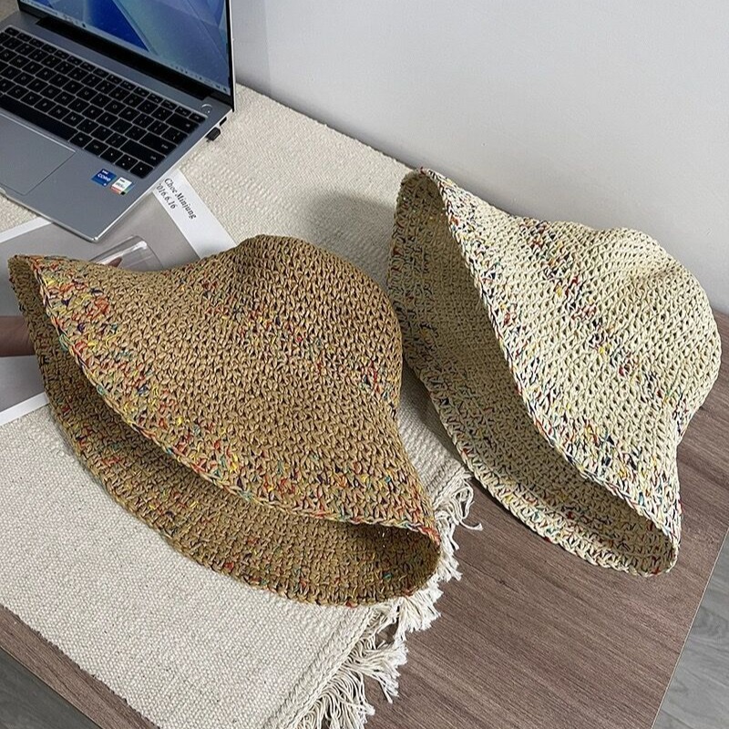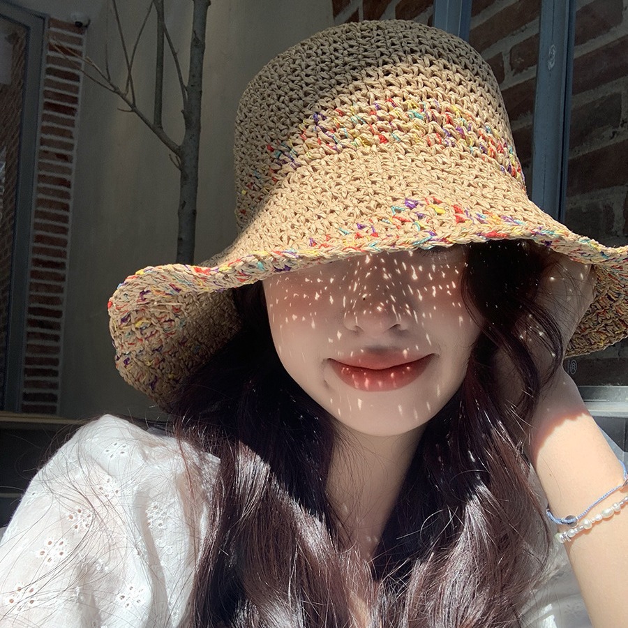 镂空防晒遮阳帽馨帮帮夏季女潮透气不闷热彩色度假风宽檐编织草帽