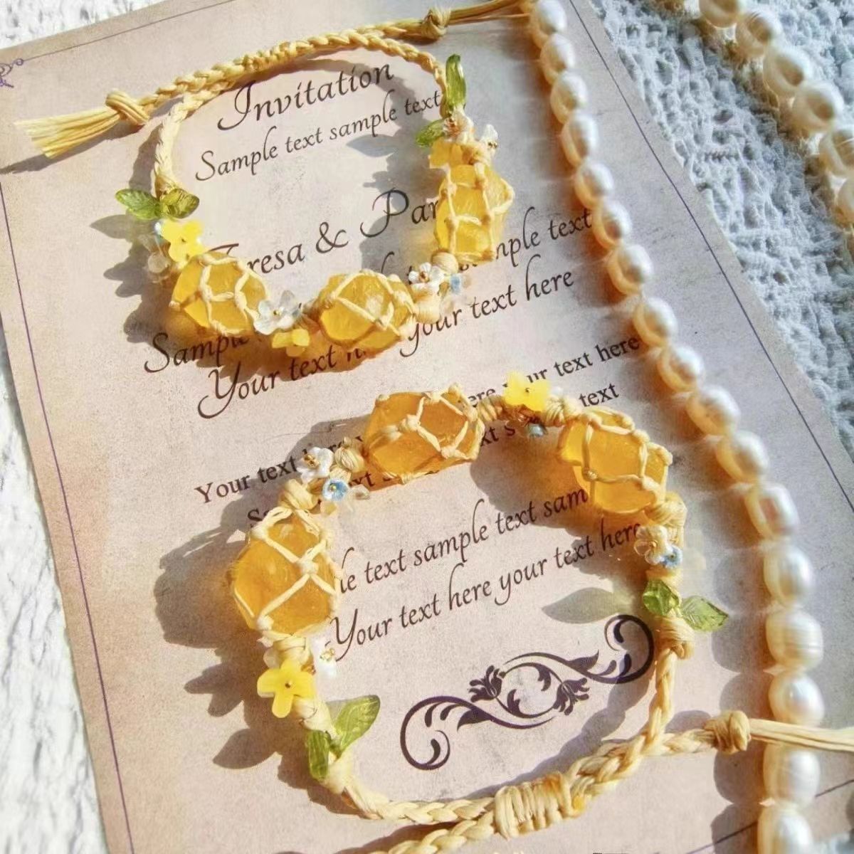 原创设计macrame编织水晶手链手绳合成蓝荧石森系花朵手绳