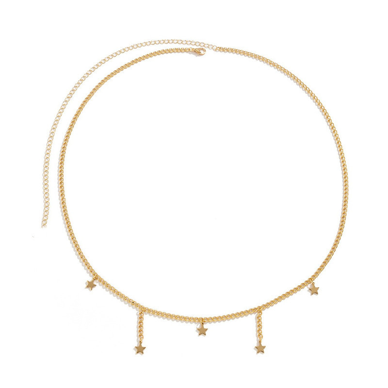 欧美跨境饰品 夏季沙滩度假风简约合金星星流苏腰链 身体链女现货