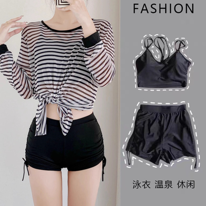 新款泳衣女分体运动三件套保守显瘦遮肚韩国温泉长袖纯欲背心泳装